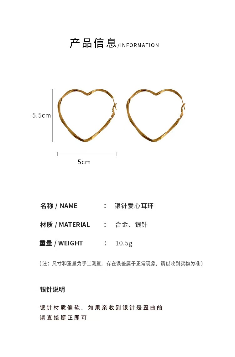 商品名称:彤彤兔 不规则爱心耳圈甜酷辣妹蹦迪耳环女ins小众设计感冷淡风耳钉耳饰