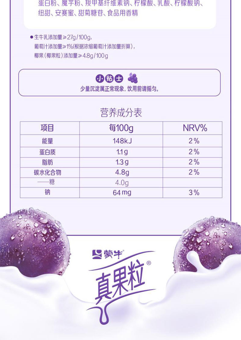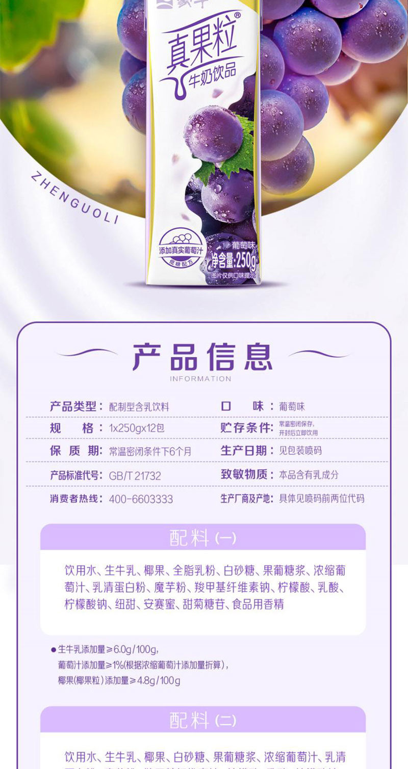 商品名称:蒙牛真果粒葡萄果粒牛奶饮品250ml*12包