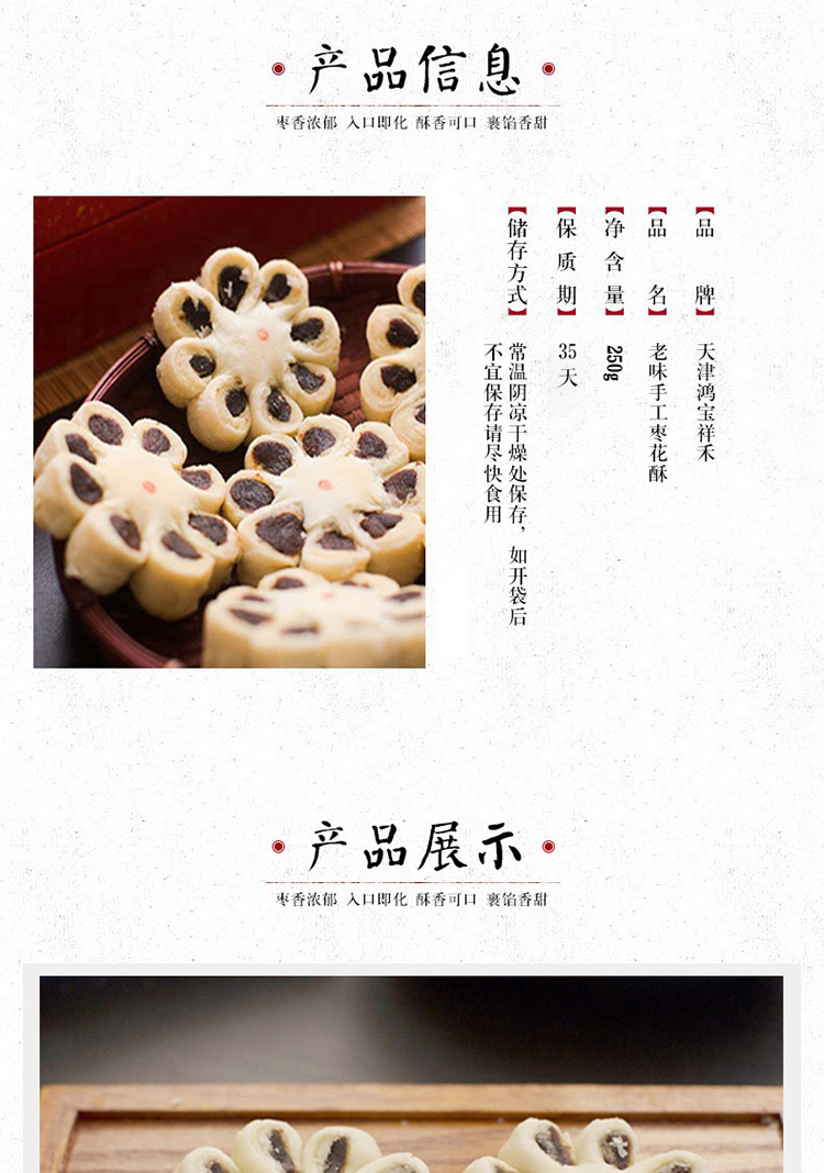 商品名称:祥禾饽饽铺 枣花酥250g*2 宫廷古法传统手工小吃糕点天津特产