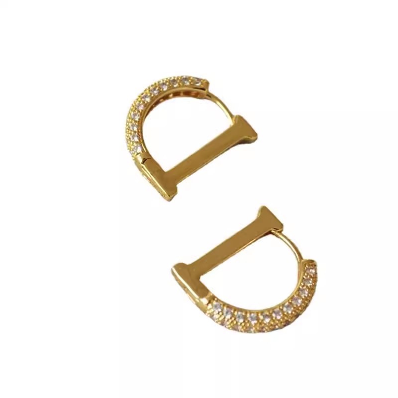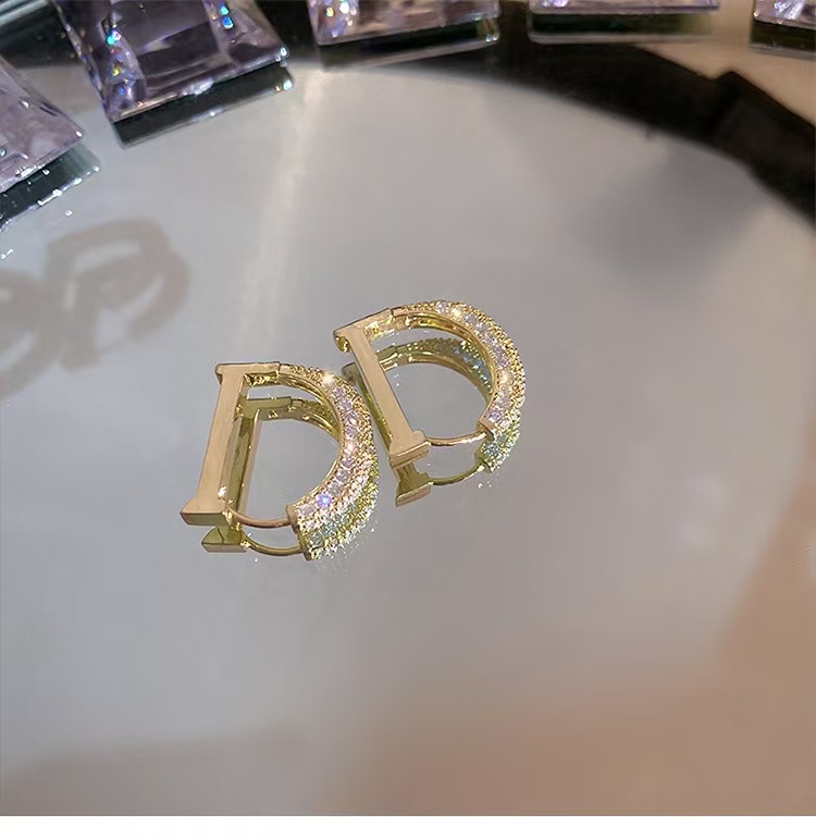 彤彤兔 D字金色高级感耳钉小众设计感网红耳环爆款耳圈时尚耳饰