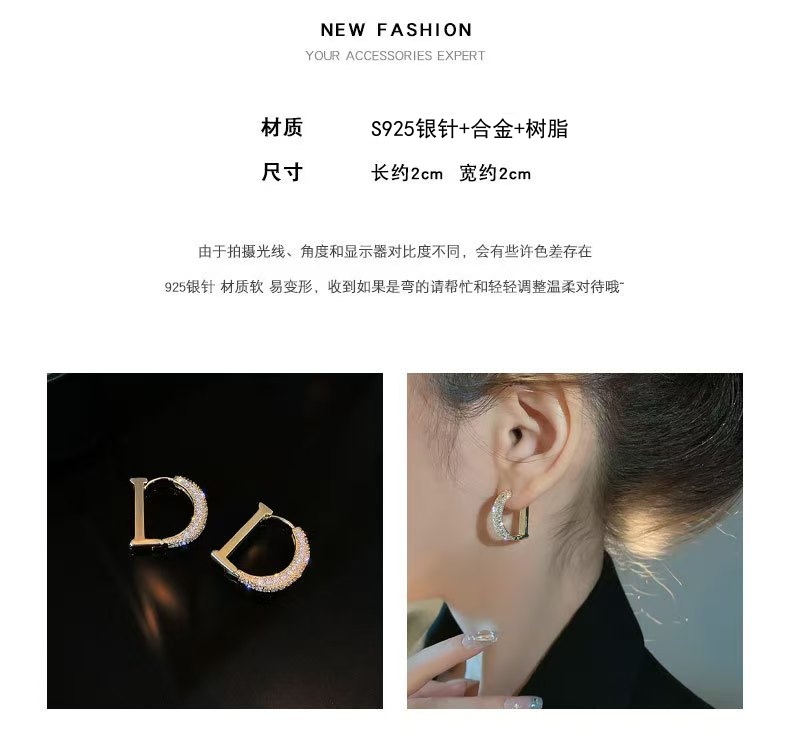 商品名称:彤彤兔 D字金色高级感耳钉小众设计感网红耳环爆款耳圈时尚耳饰