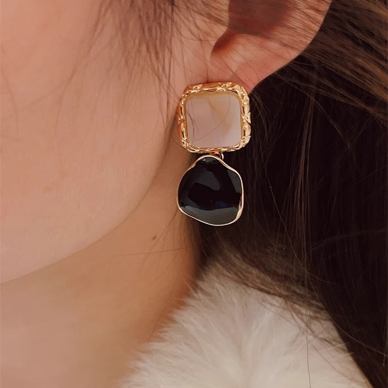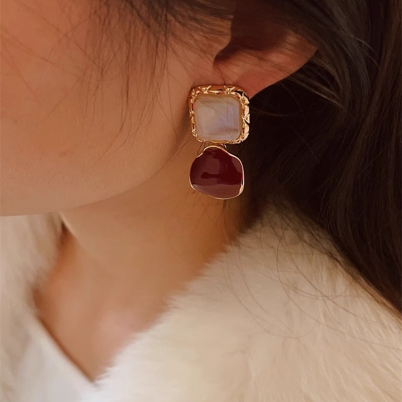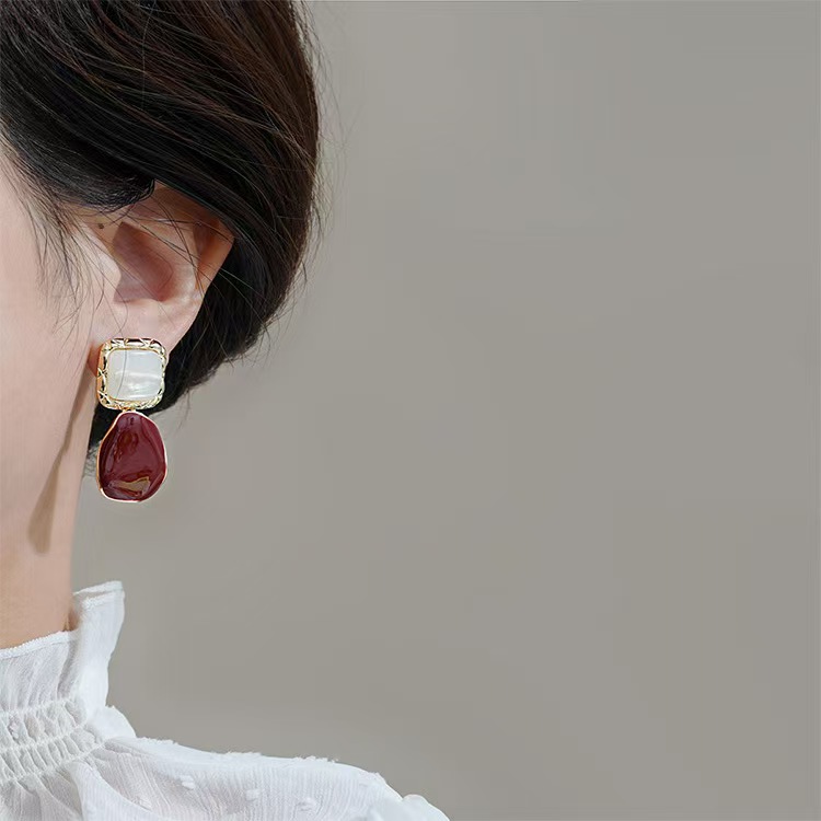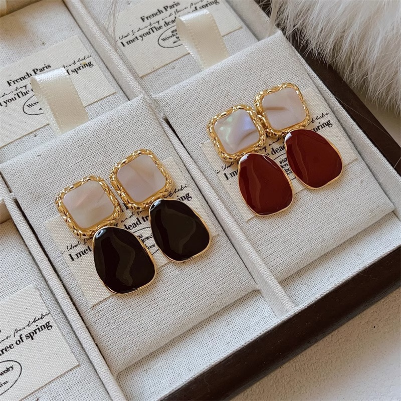 彤彤兔 S925银针几何形耳环法式复古小众设计高级感简约滴釉大气耳坠