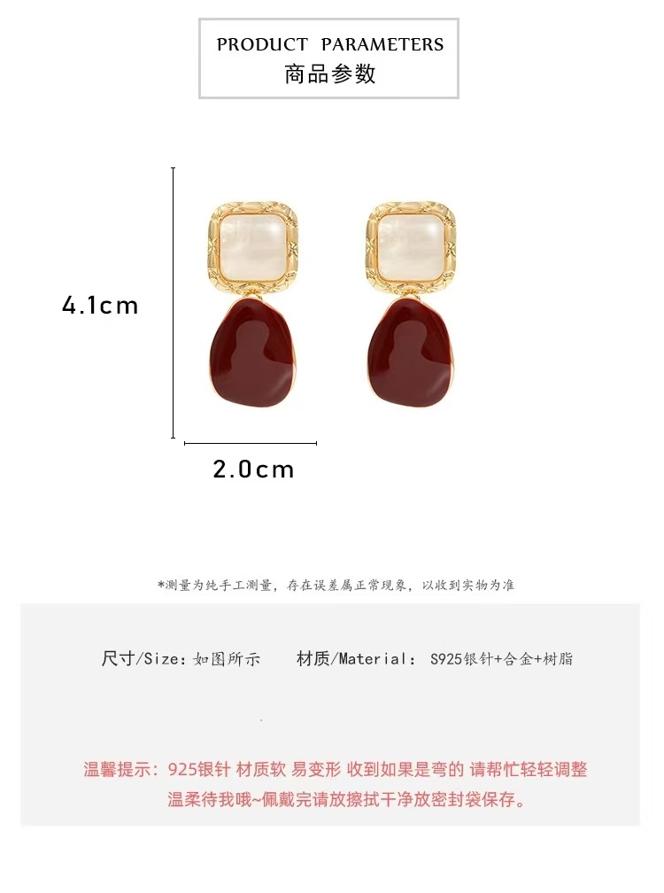 商品名称:彤彤兔 S925银针几何形耳环法式复古小众设计高级感简约滴釉大气耳坠