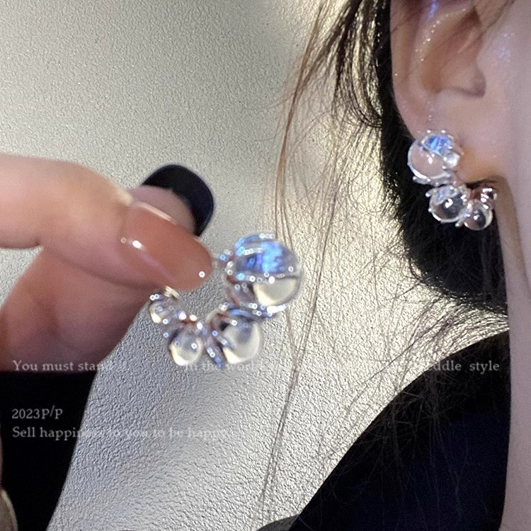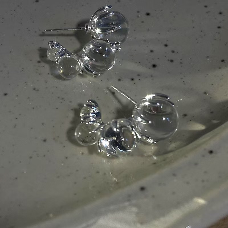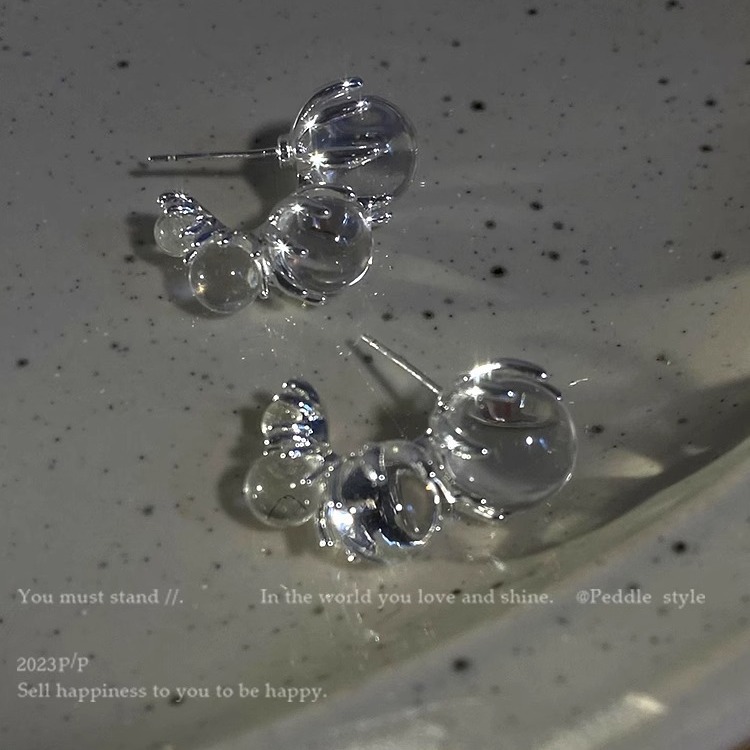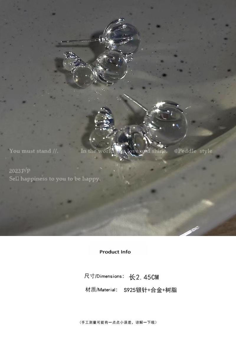 彤彤兔 S925银针冰透串珠独特耳环小众设计感高级耳钉简约气质冷淡风耳饰