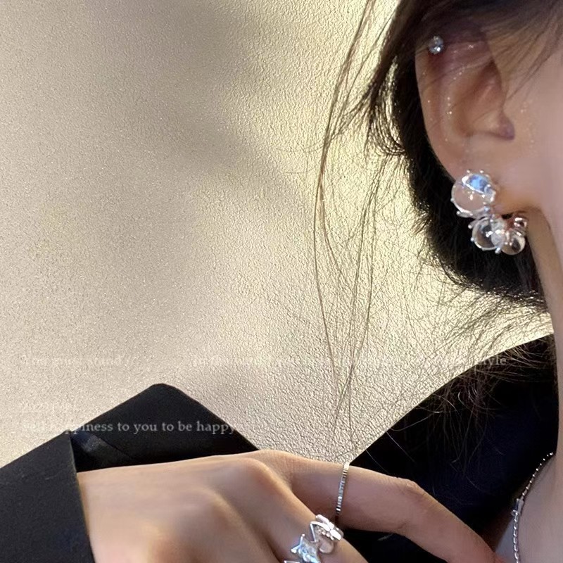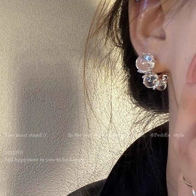 商品名称:彤彤兔 S925银针冰透串珠独特耳环小众设计感高级耳钉简约气质冷淡风耳饰