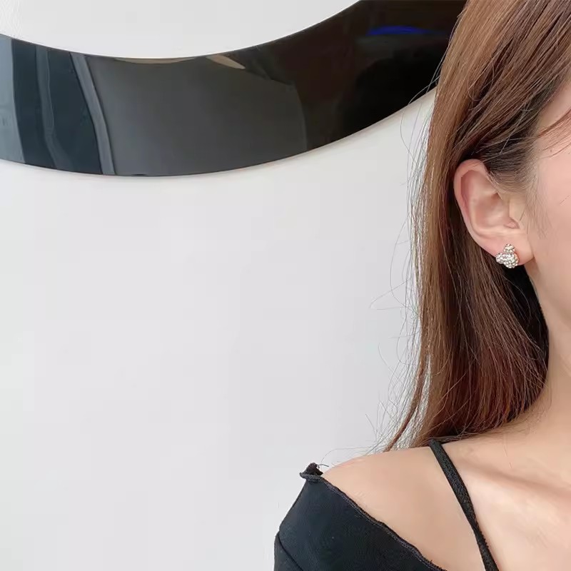 商品名称:彤彤兔 S925银针新款可爱米奇头满钻耳钉精致白钻立体老鼠耳环东大门耳饰