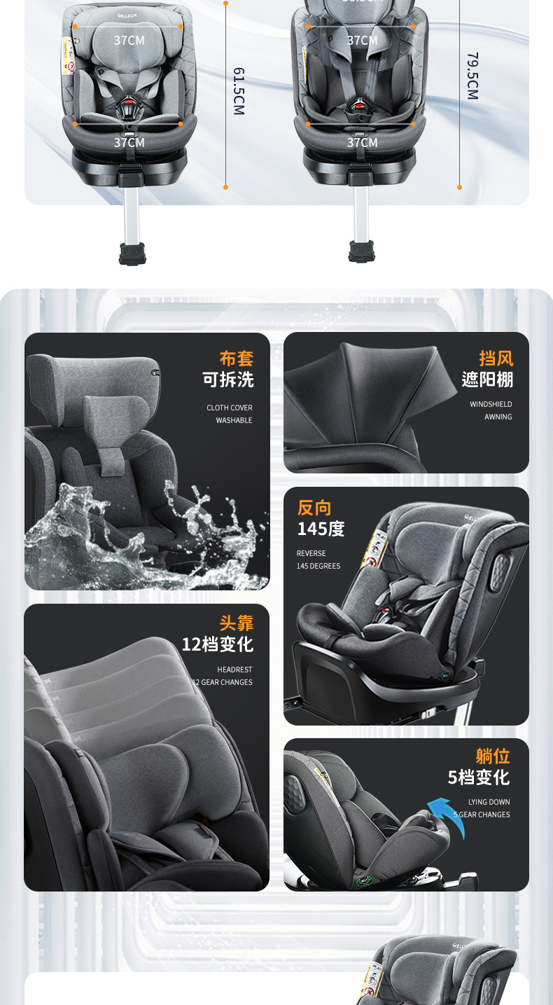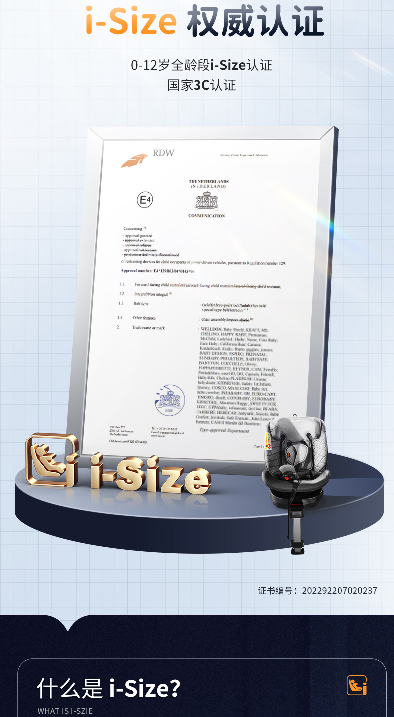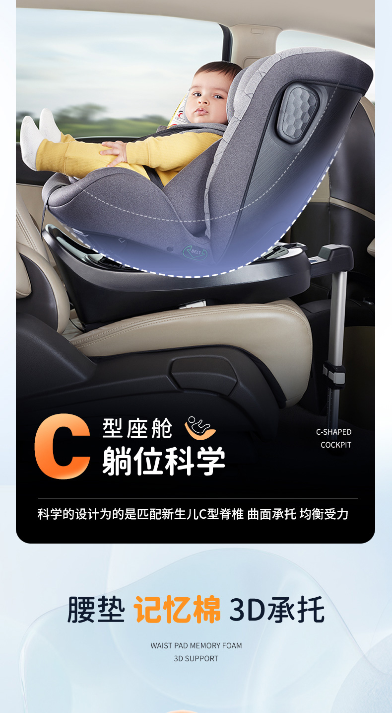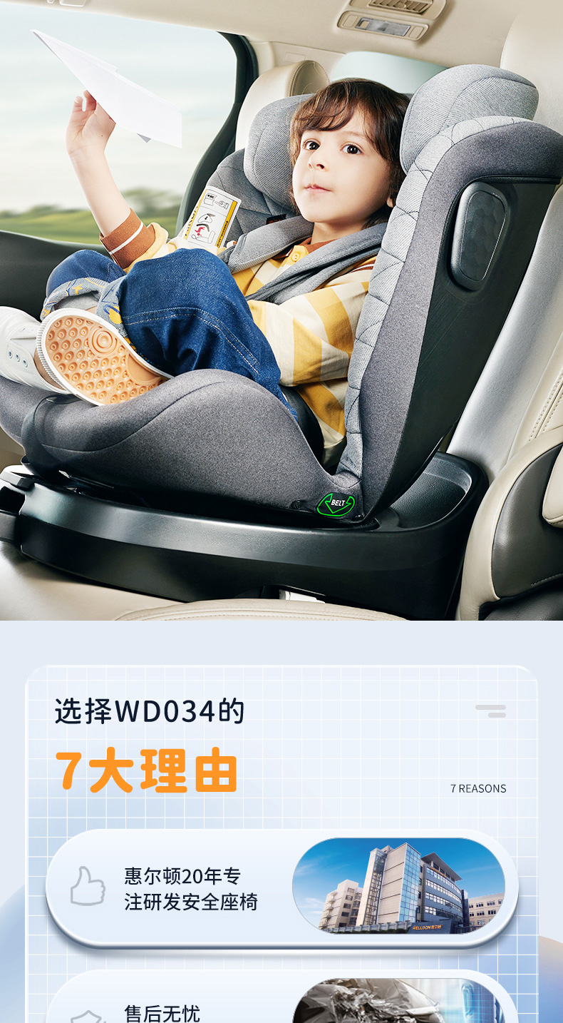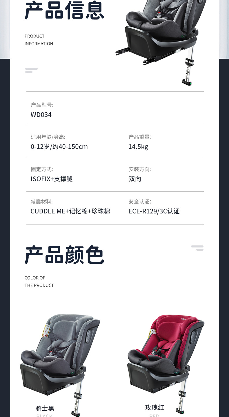 商品名称:惠尔顿安琪拉pro欧盟ISIZE认证0-12岁带支撑腿360度旋转侧方悬停坐椅汽车安全坐椅WD034