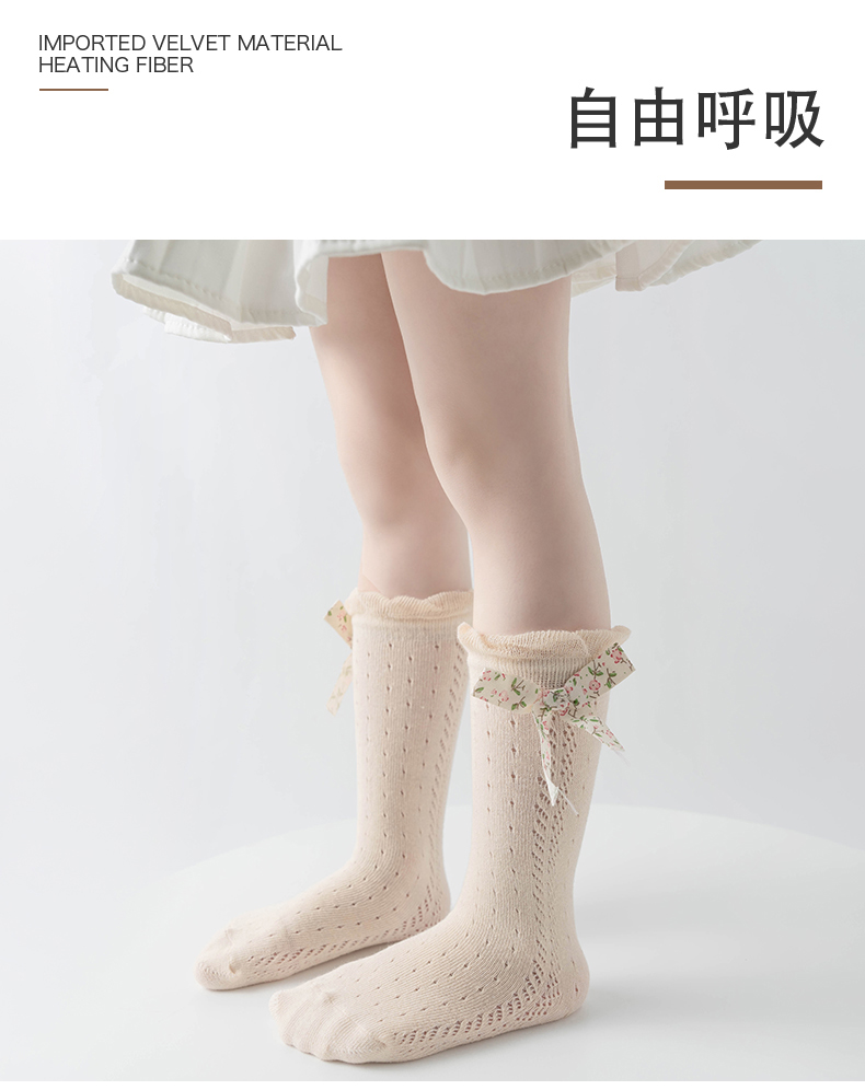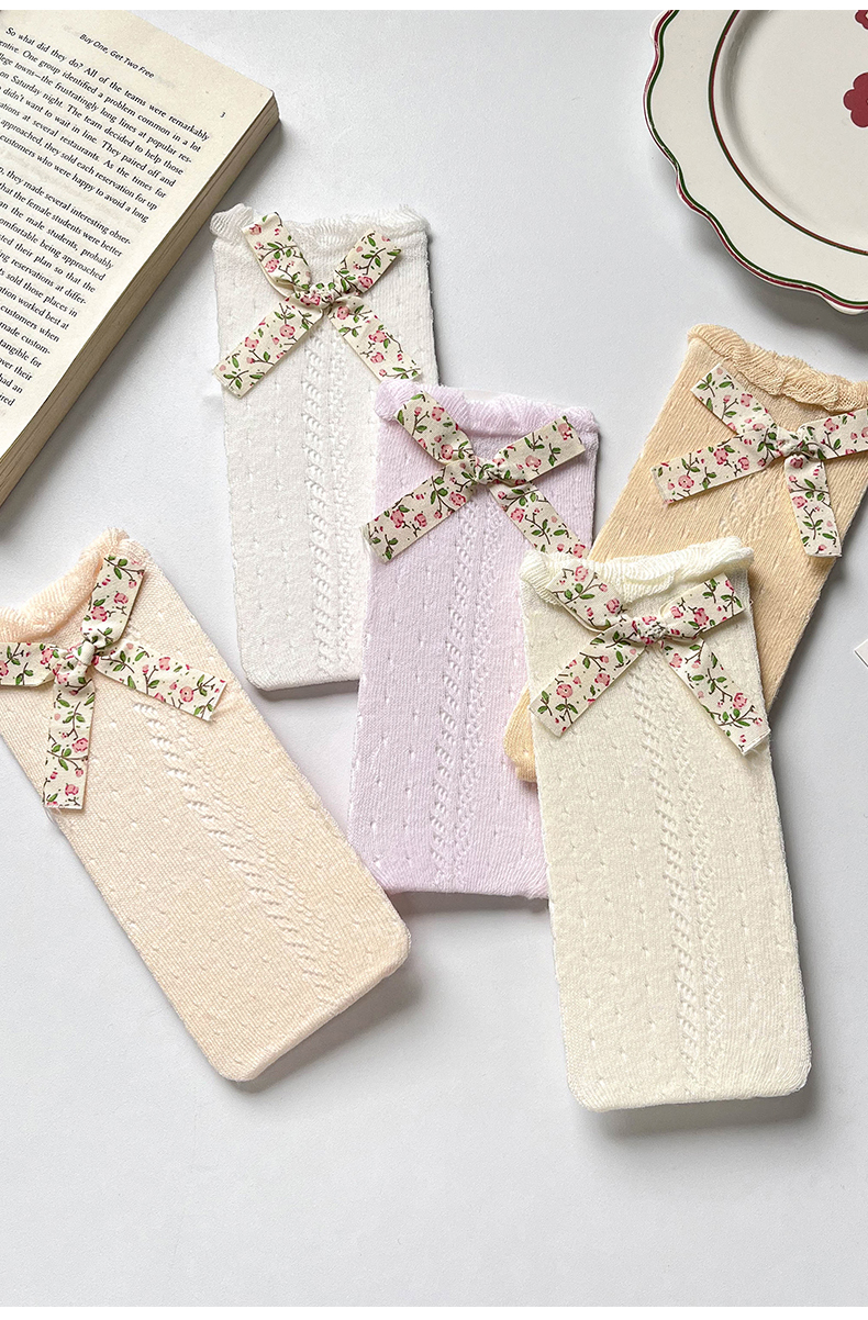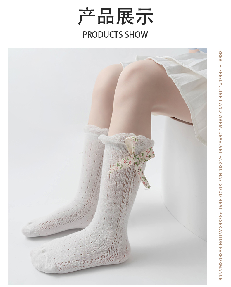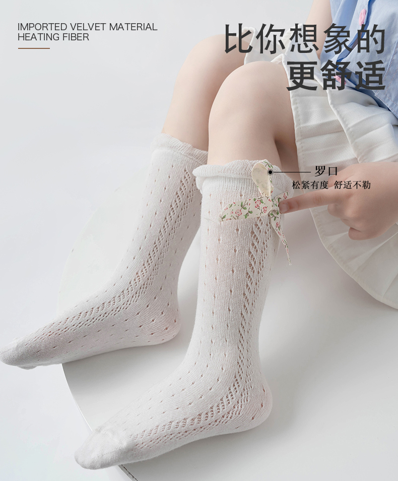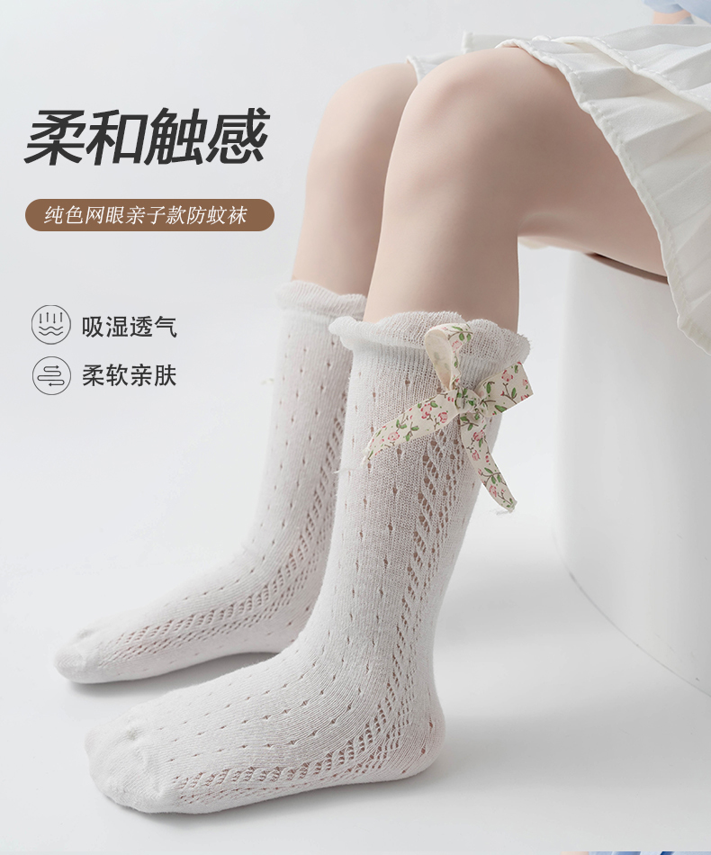 商品名称:【5双装】朝暮栖止儿童防蚊袜蝴蝶结款网眼透气吸汗长筒棉袜子