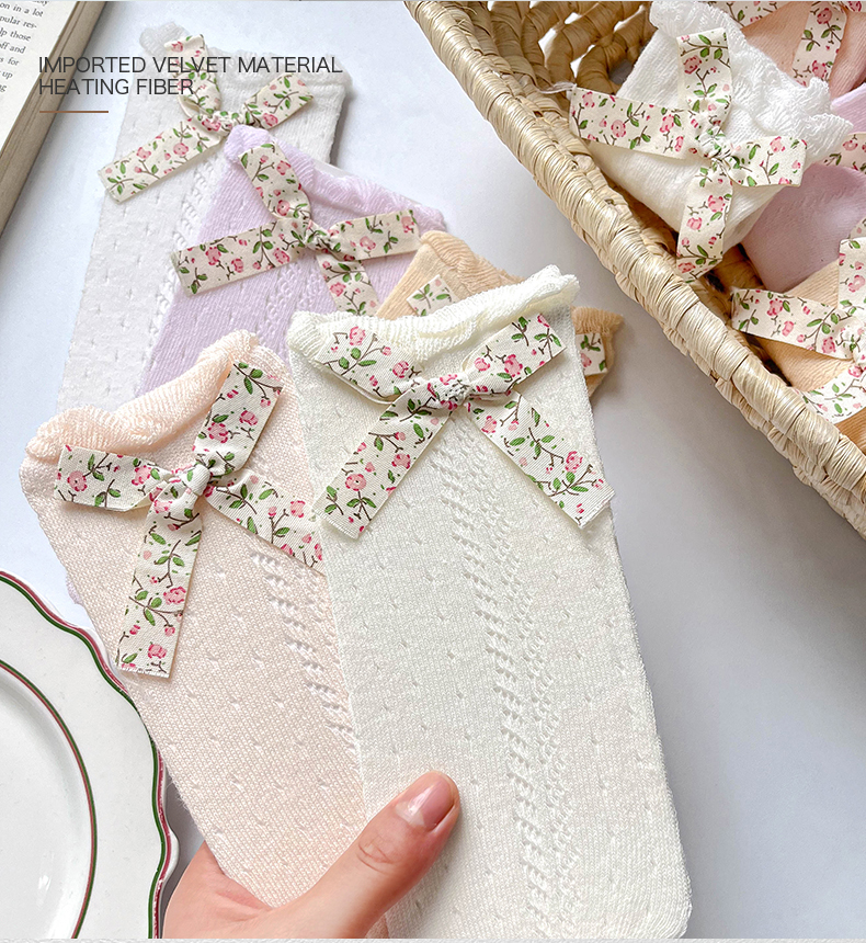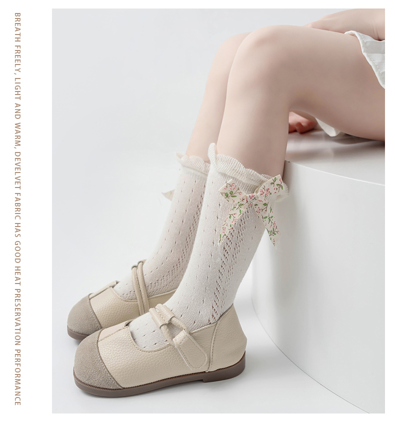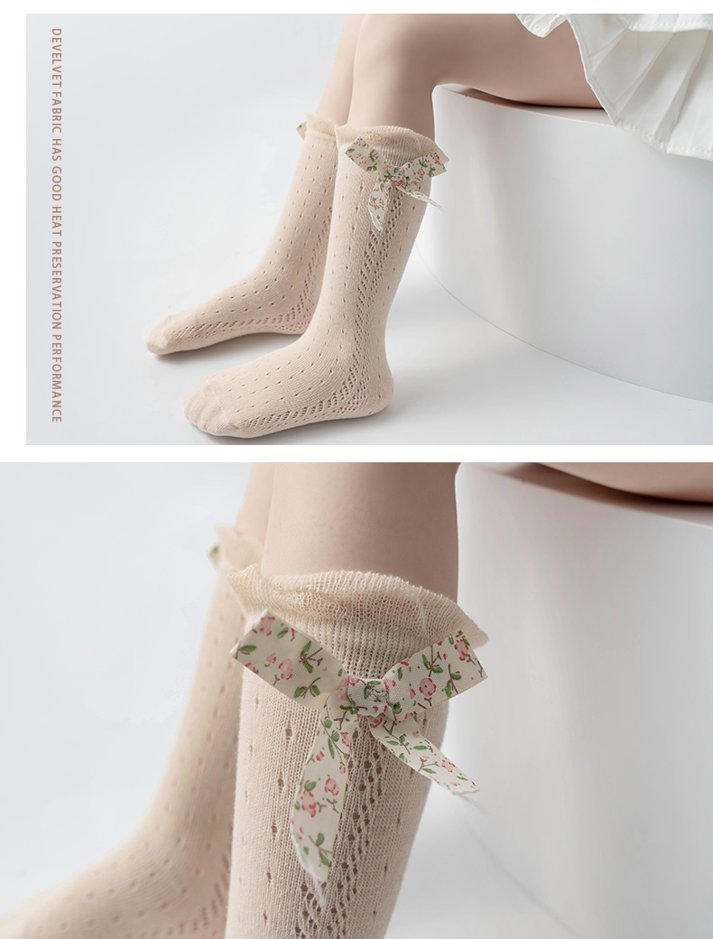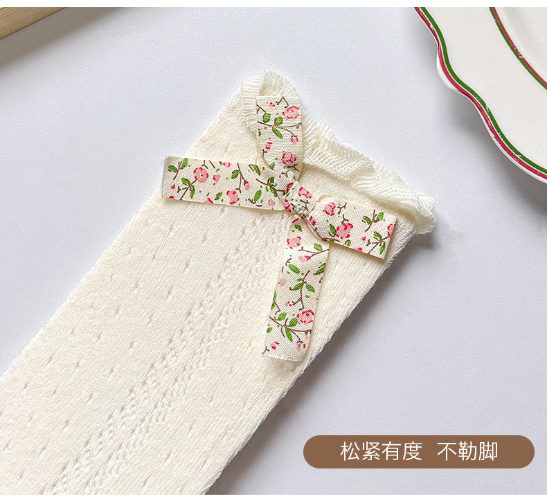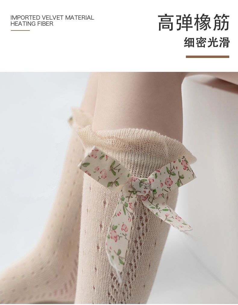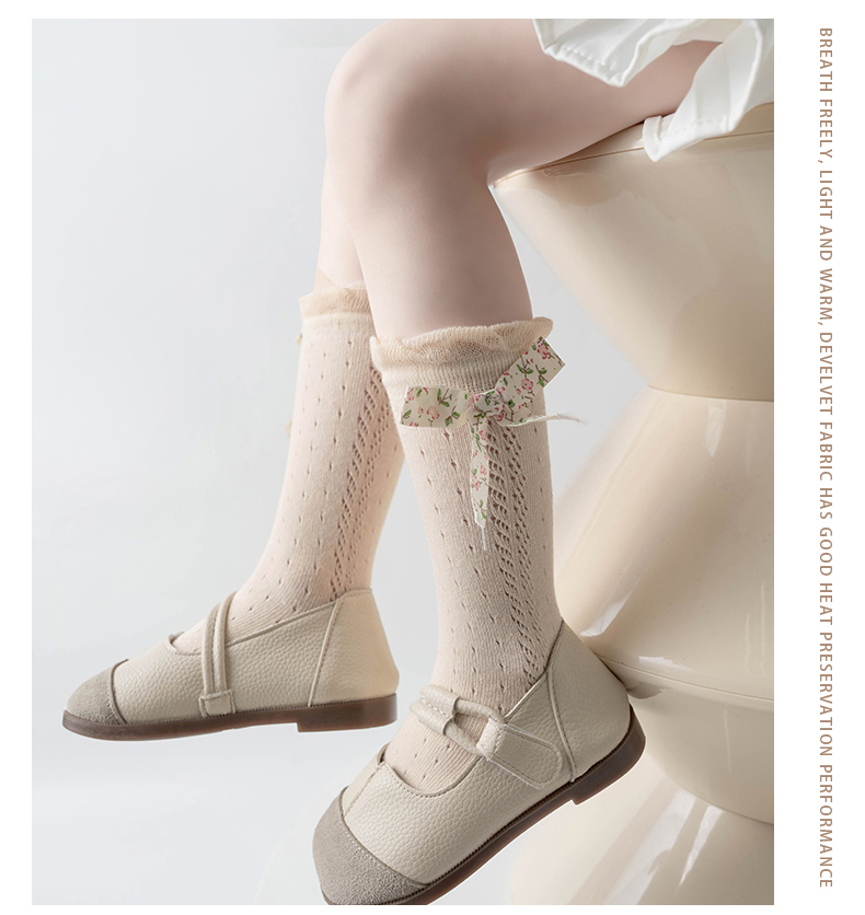 商品名称:【5双装】朝暮栖止儿童防蚊袜蝴蝶结款网眼透气吸汗长筒棉袜子