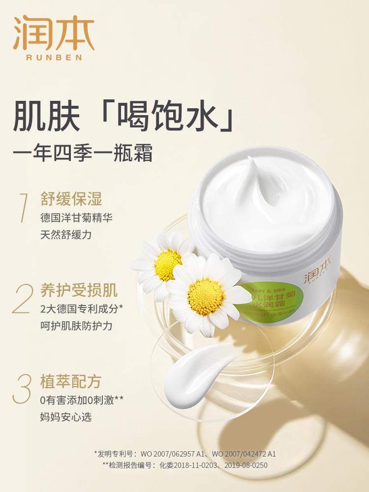 商品名称:【一件起批】润本防皴霜洋甘菊水润霜舒缓霜护理面霜小桃喜透润保湿舒润霜唇膏润肤乳