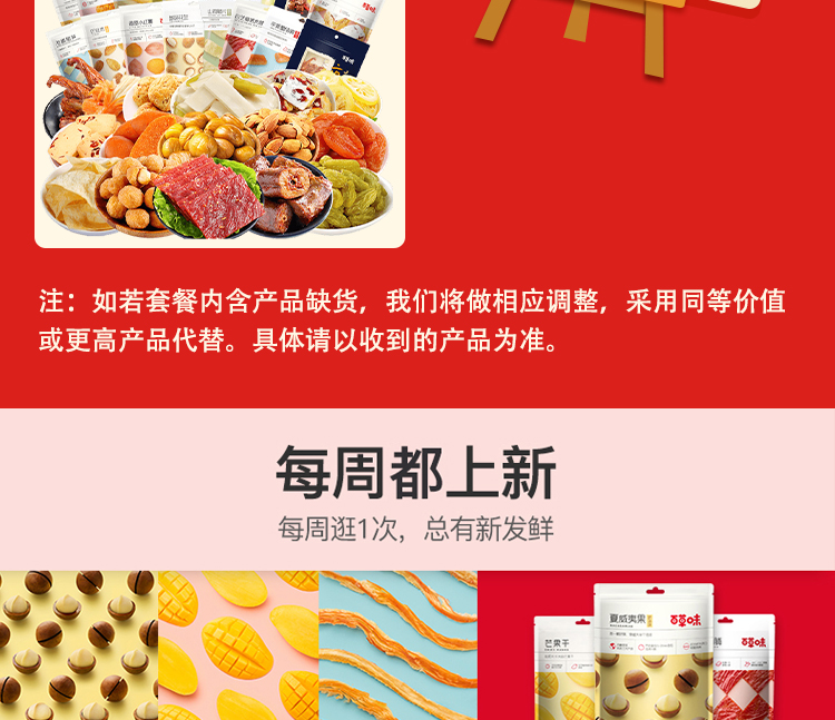 百草味招牌零食组合芒果干鱿鱼条脆马蹄坚果零食大礼包网红下午茶休闲充饥夜宵