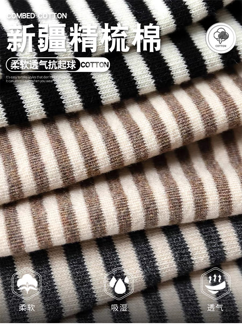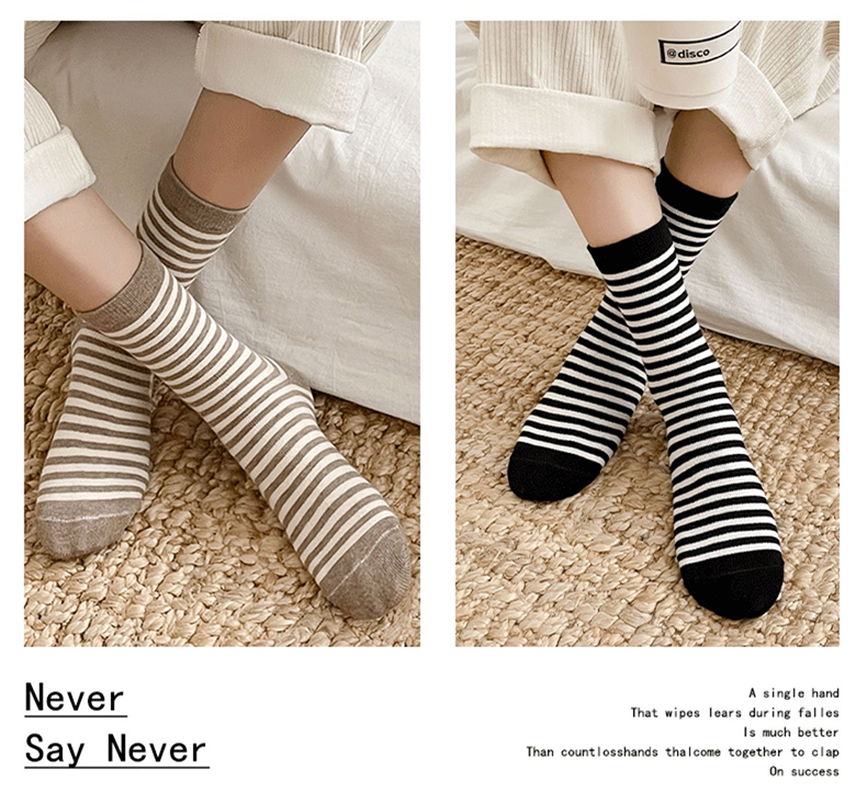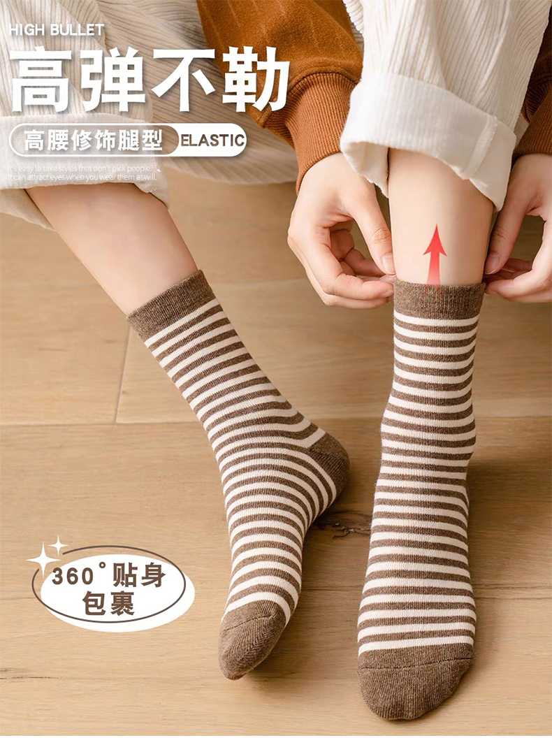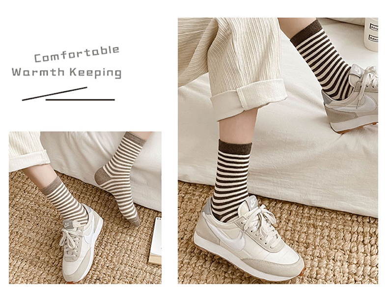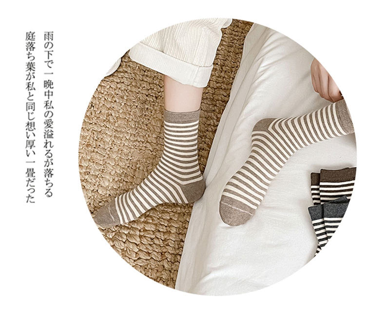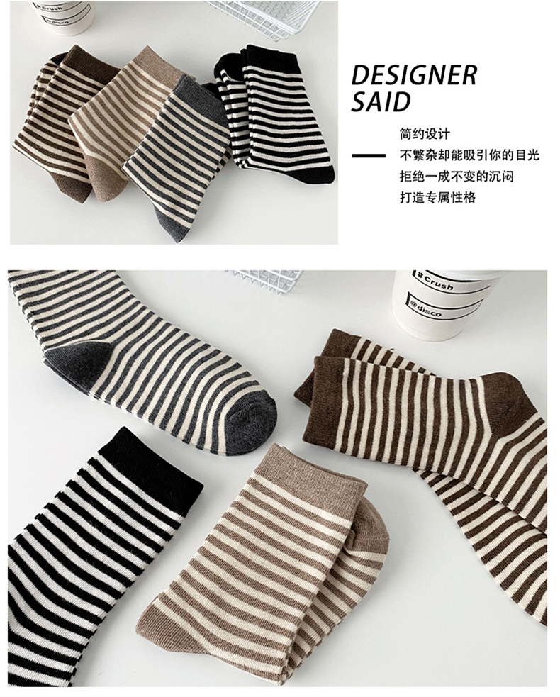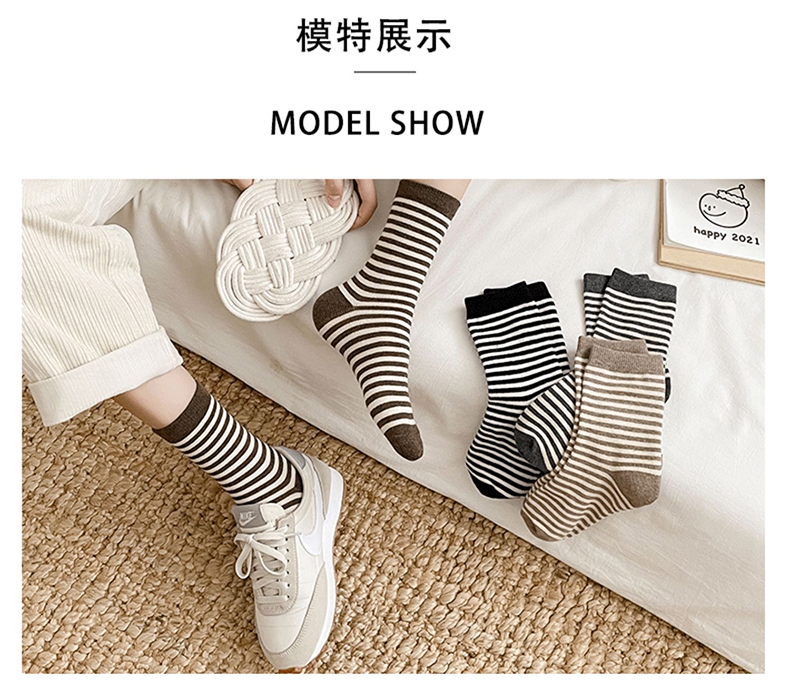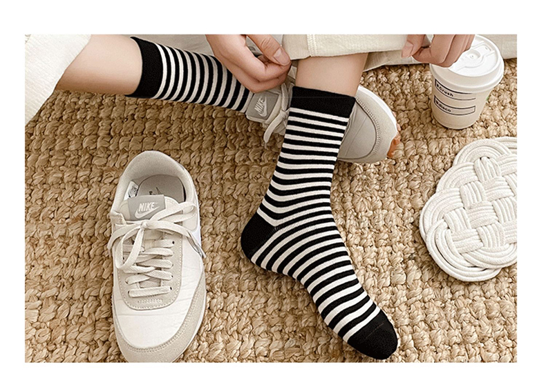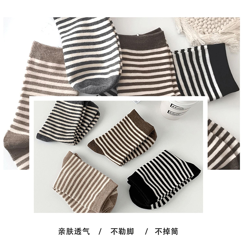 商品名称:【4双装】朝暮栖止女士日系条纹素色透气吸汗中筒棉袜子