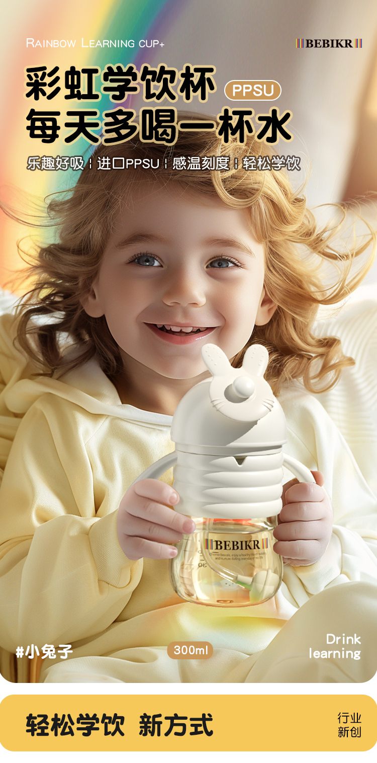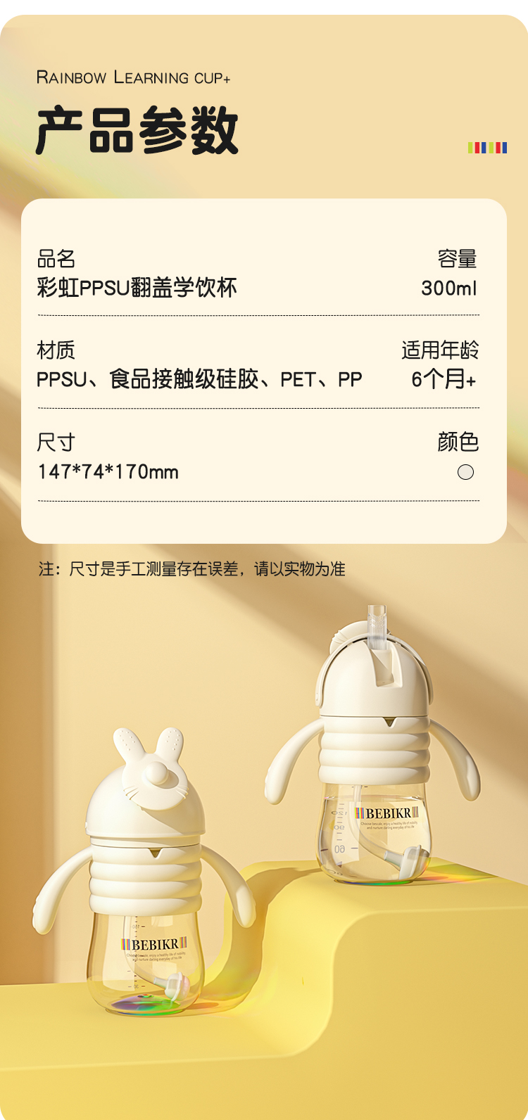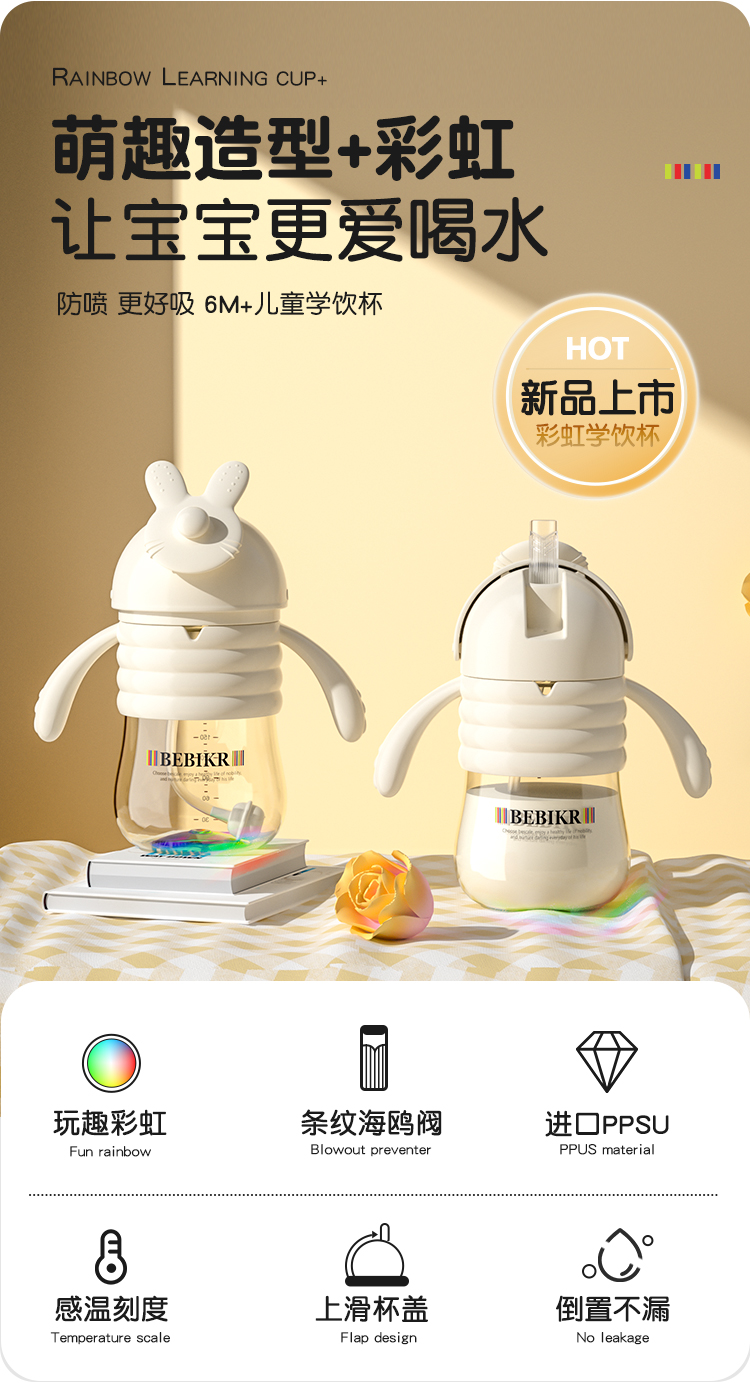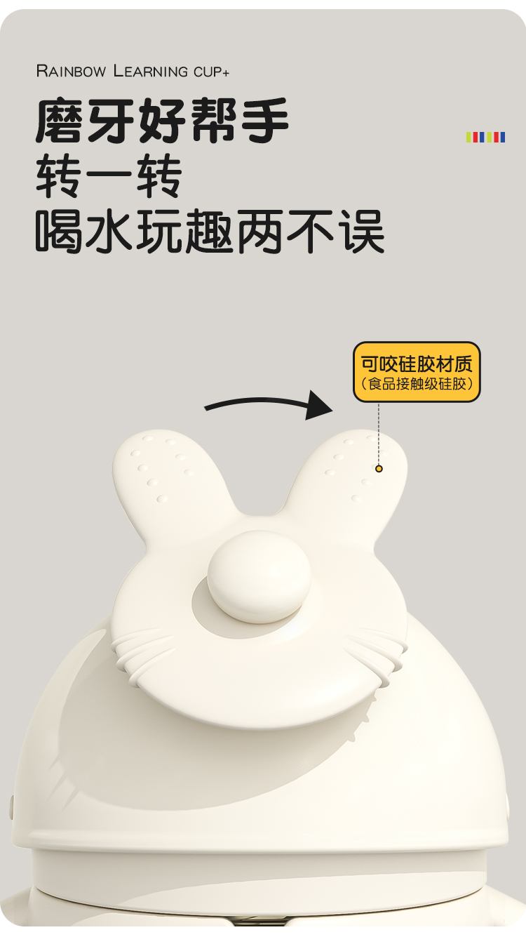 商品名称:爱菲儿【小兔子彩虹水杯】PPSU儿童水杯宝宝学饮杯V型防呛耐摔喝水杯彩虹感温变色刻度