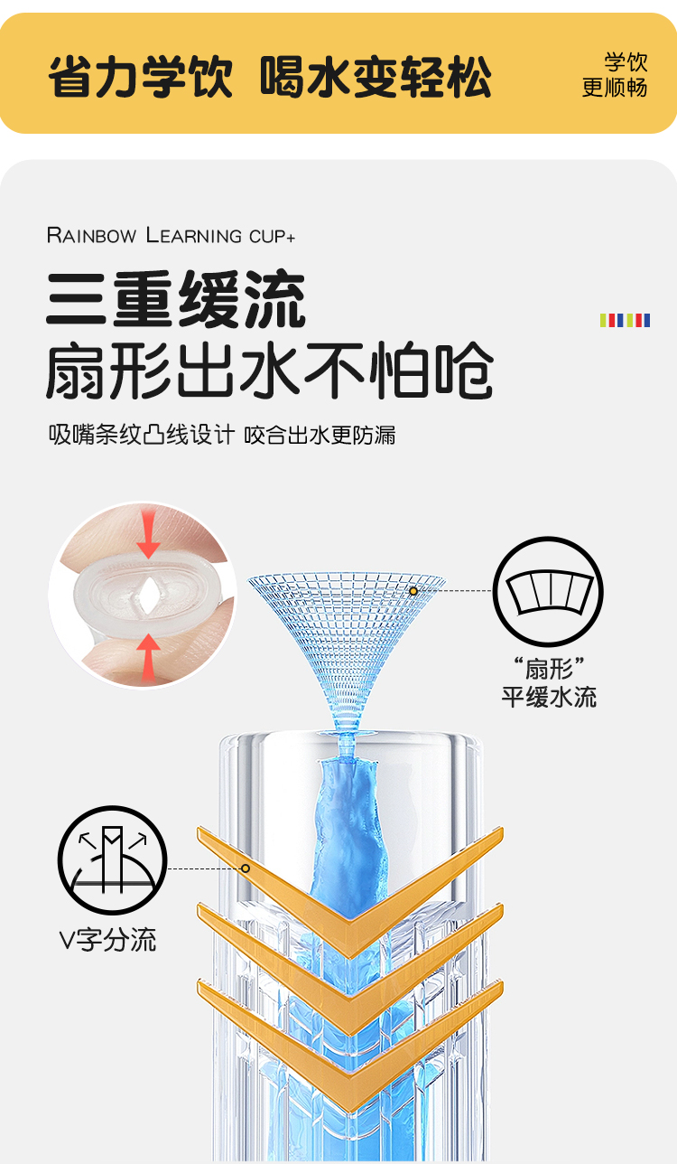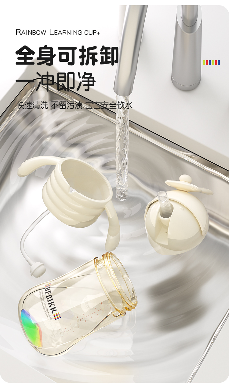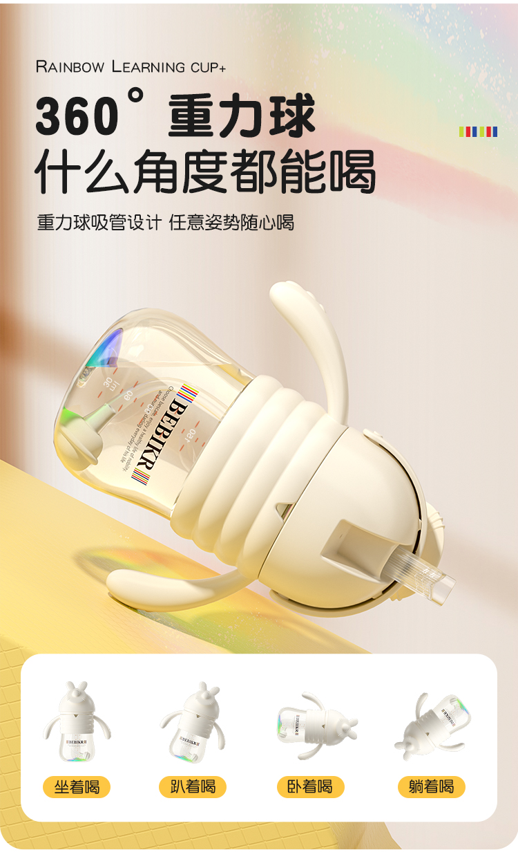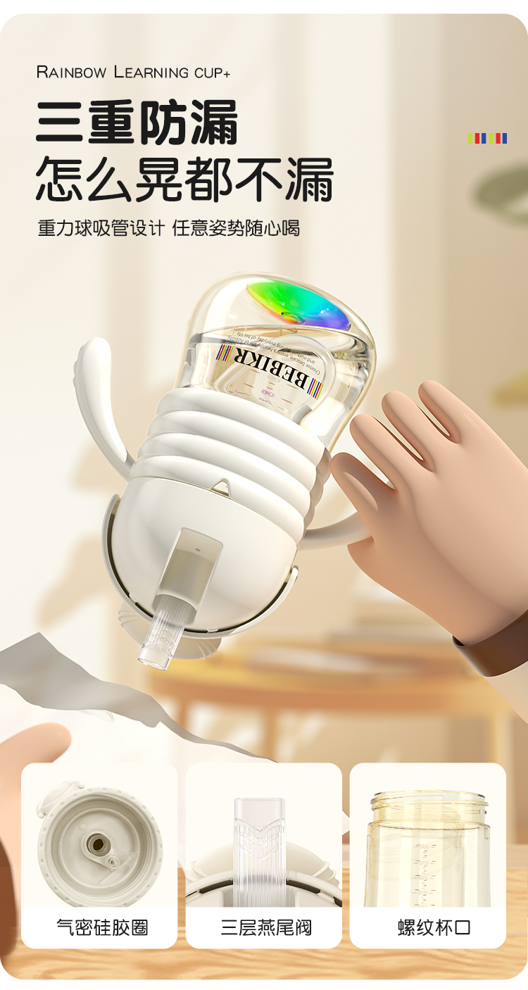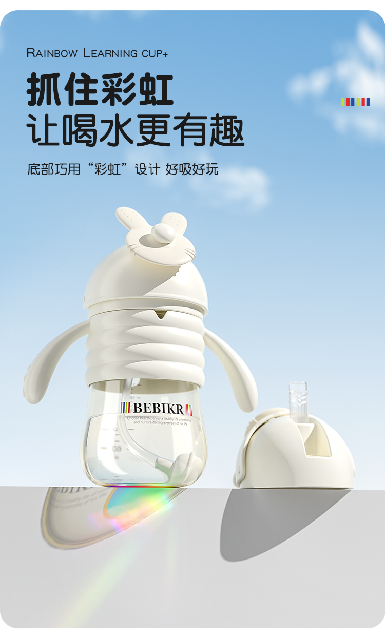 商品名称:爱菲儿【小兔子彩虹水杯】PPSU儿童水杯宝宝学饮杯V型防呛耐摔喝水杯彩虹感温变色刻度