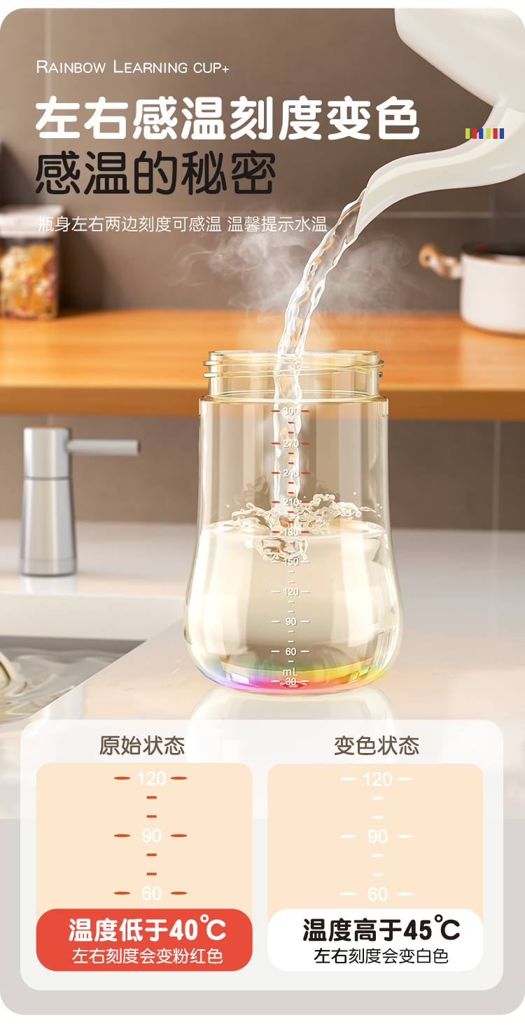 爱菲儿【小兔子彩虹水杯】PPSU儿童水杯宝宝学饮杯V型防呛耐摔喝水杯彩虹感温变色刻度