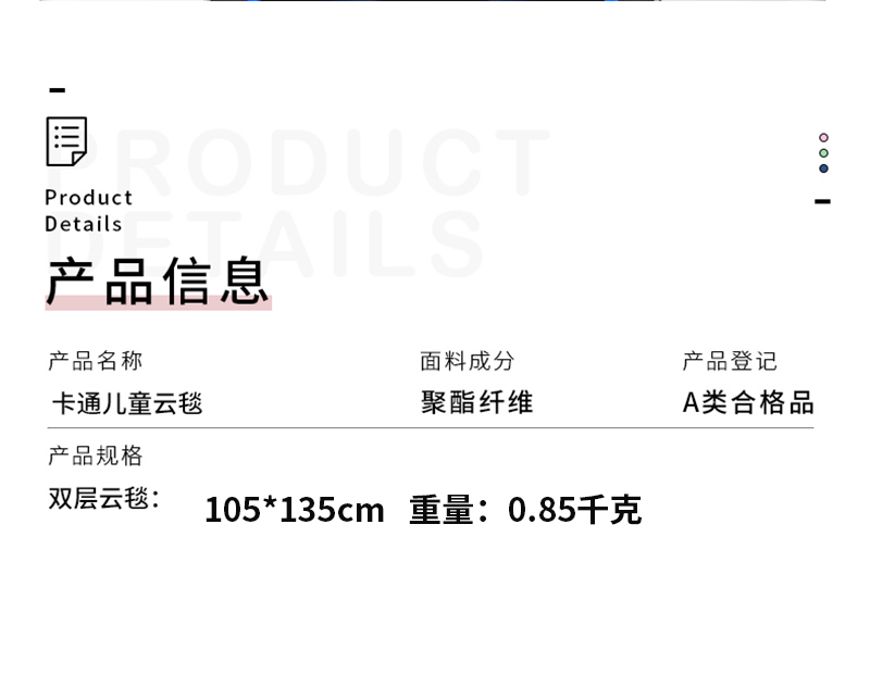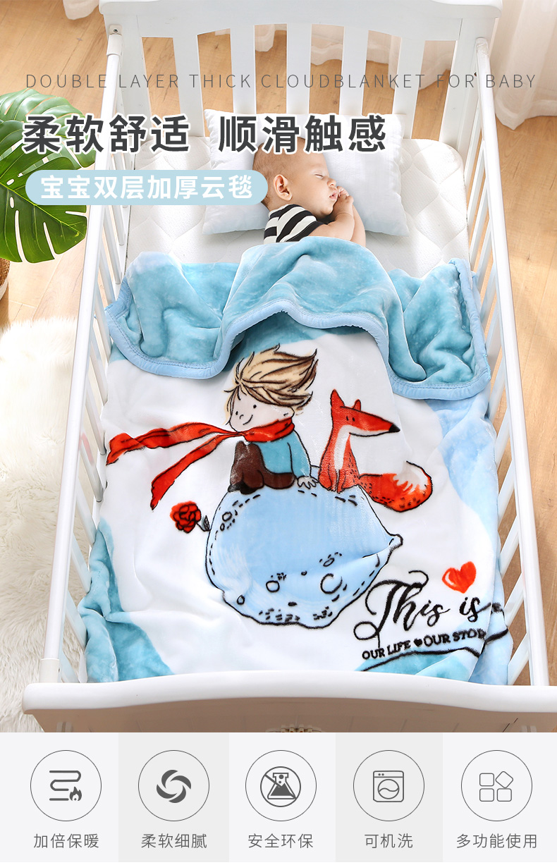 商品名称:【动感光波】双层加厚幼儿园盖毯宝宝云毯不掉毛没静电可机洗规格105*135cm