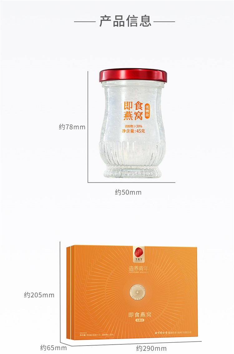 商品名称:北京同仁堂燕窝即食燕窝礼盒45g*7瓶低糖款中秋礼盒送长辈送妈妈营养品补品