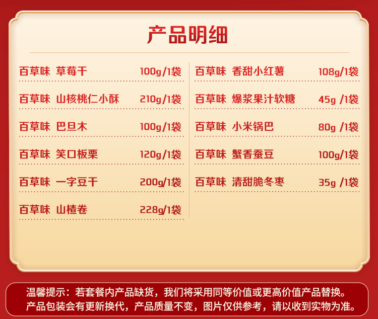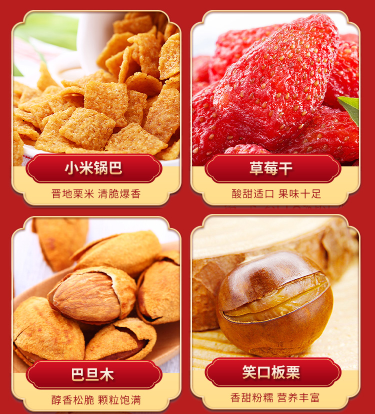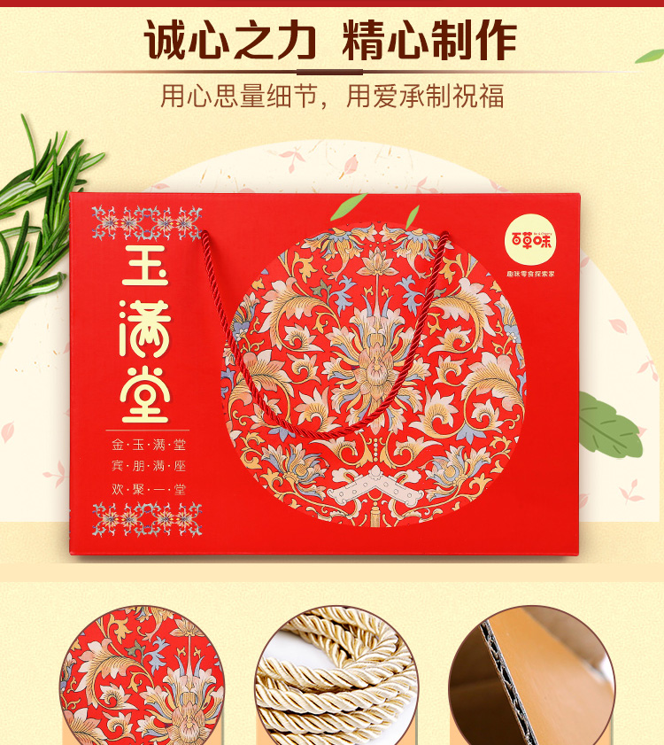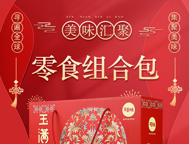 商品名称:百草味 幸福礼玉满堂零食礼盒1326g/11袋装年货坚果零食大礼包组合整箱网红健康休闲小吃