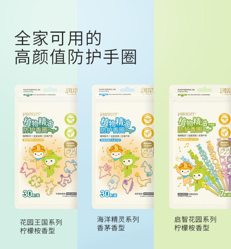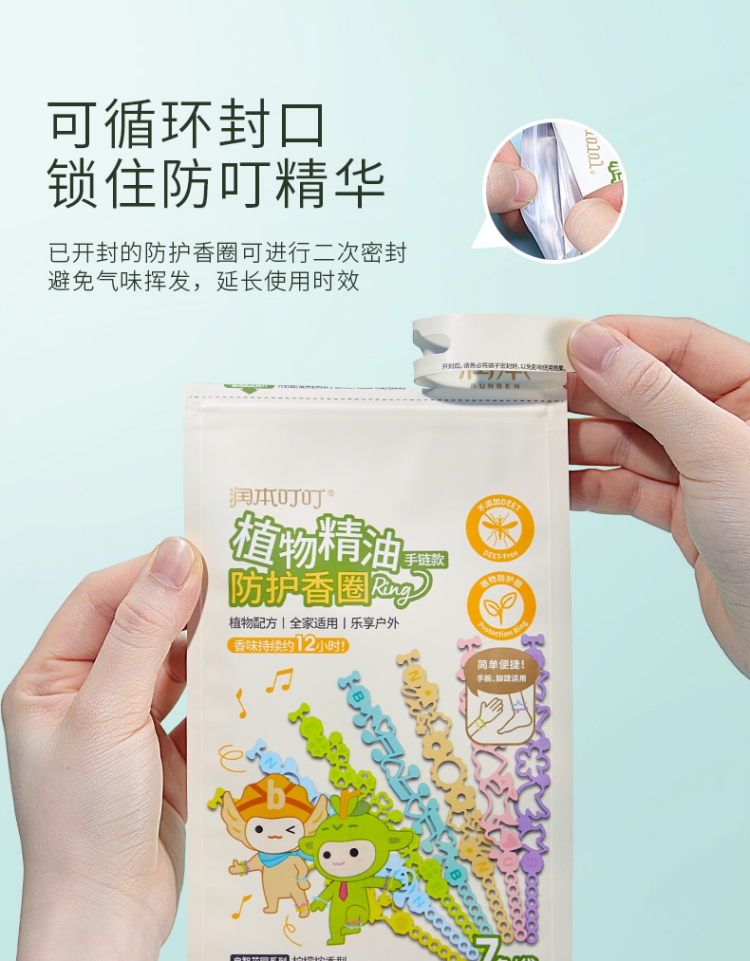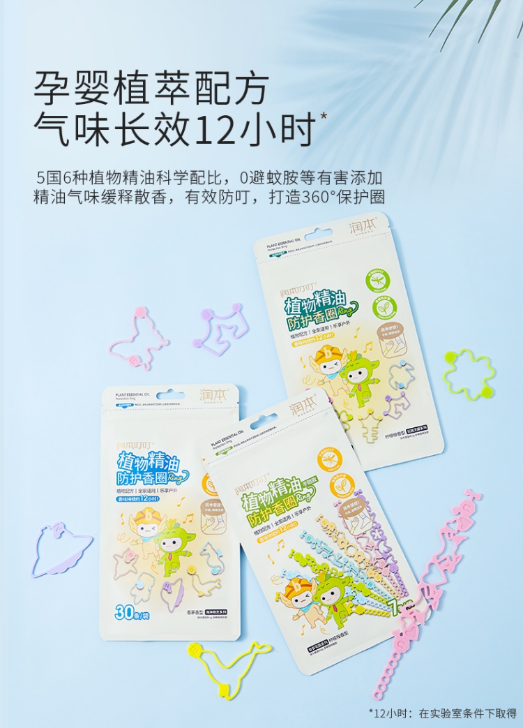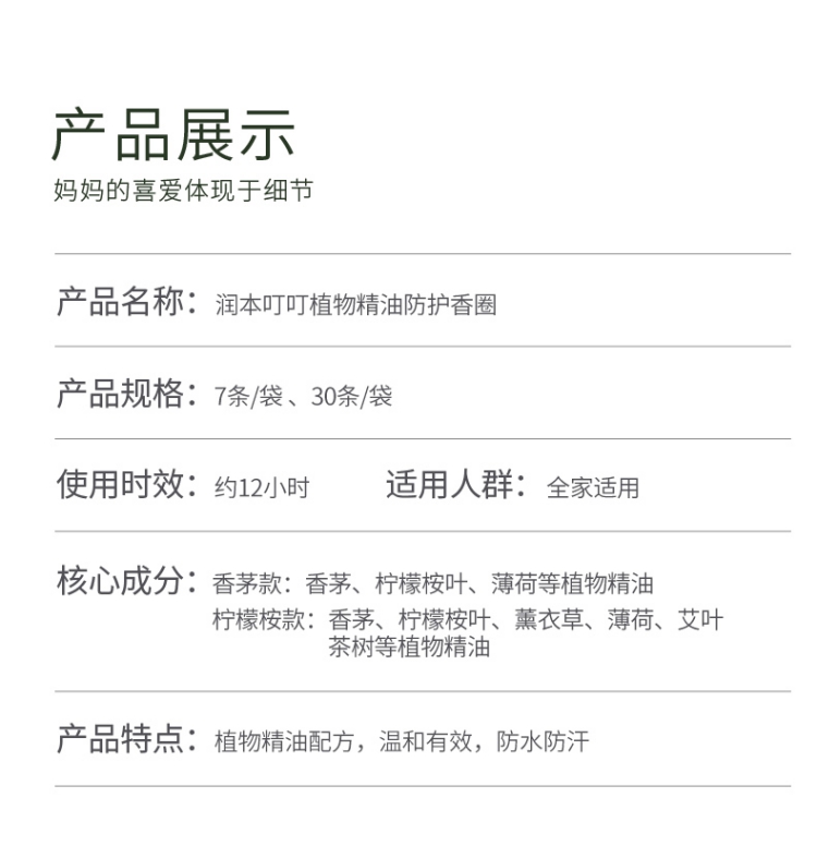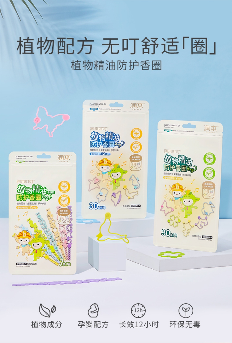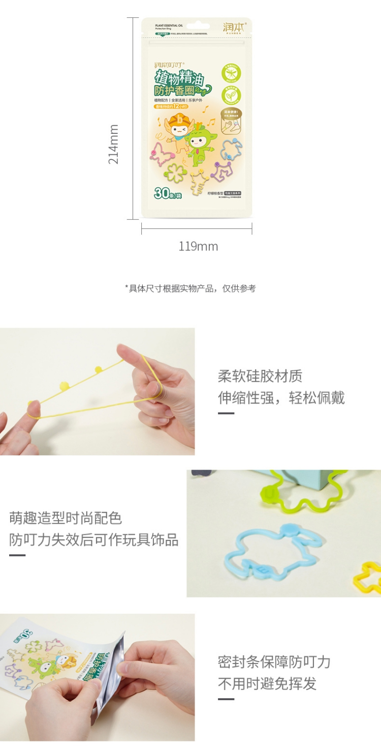 商品名称:【2件起批】润本叮叮植物精油手环植物精油防护香圈30条硅胶安全材质儿童户外玩耍