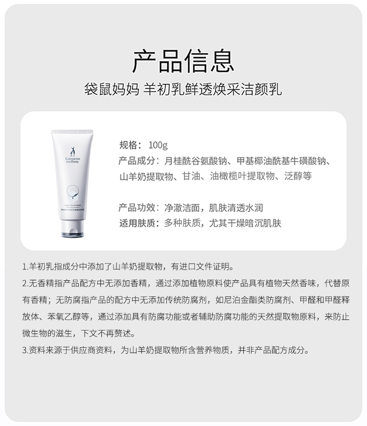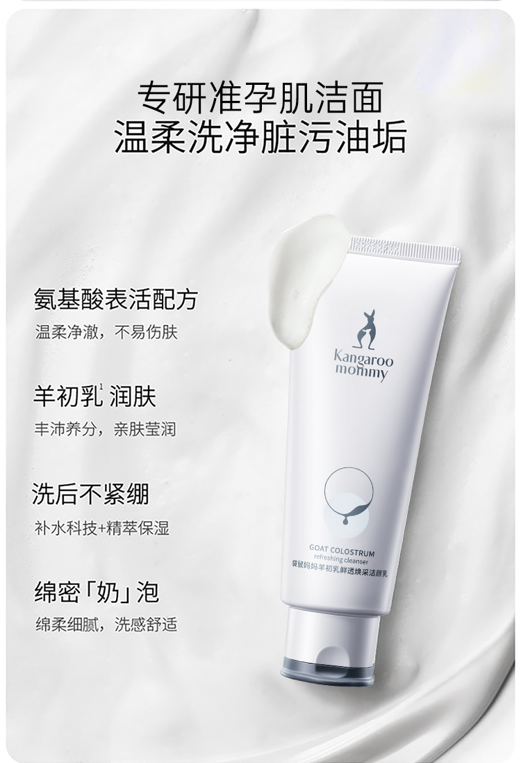 商品名称:【秋冬柔润洁面】袋鼠妈妈准孕妇护肤品洗面奶温和深层清洁羊初乳洁面乳可用100g