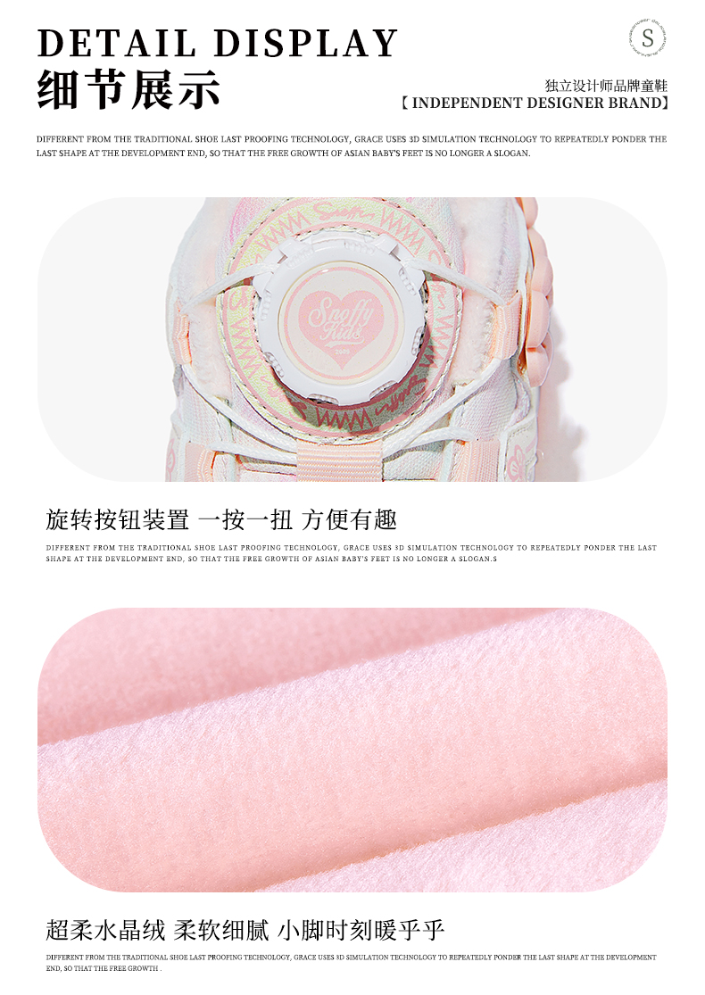 商品名称:Snoffy斯纳菲女童运动鞋冬季儿童加绒二棉鞋小学生软底旋钮老爹鞋