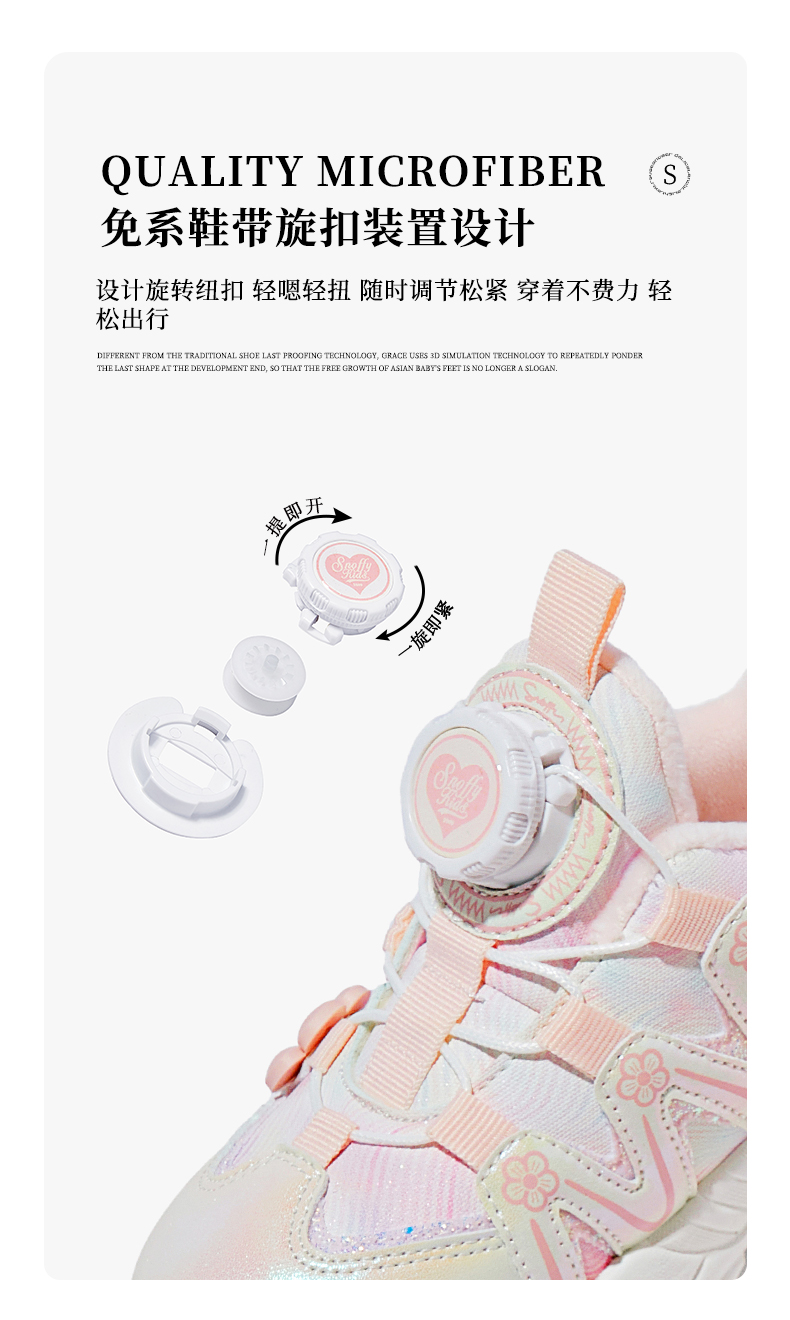 Snoffy斯纳菲女童运动鞋冬季儿童加绒二棉鞋小学生软底旋钮老爹鞋