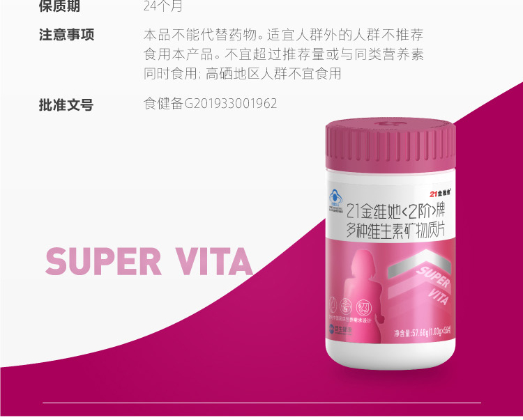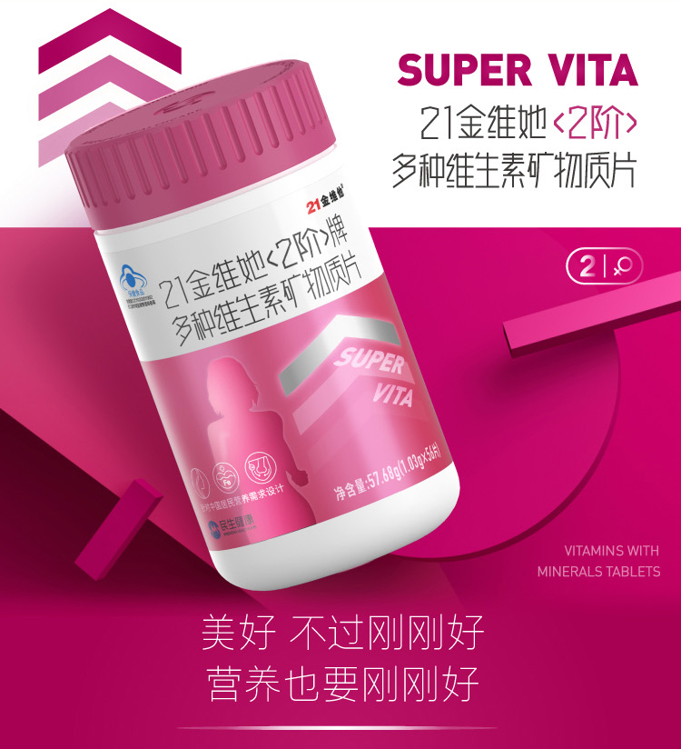 商品名称:21金维他 金维她2阶多种复合维生素片 成人女士维生素A烟酰胺 维生素K2 维生素B VC 56片