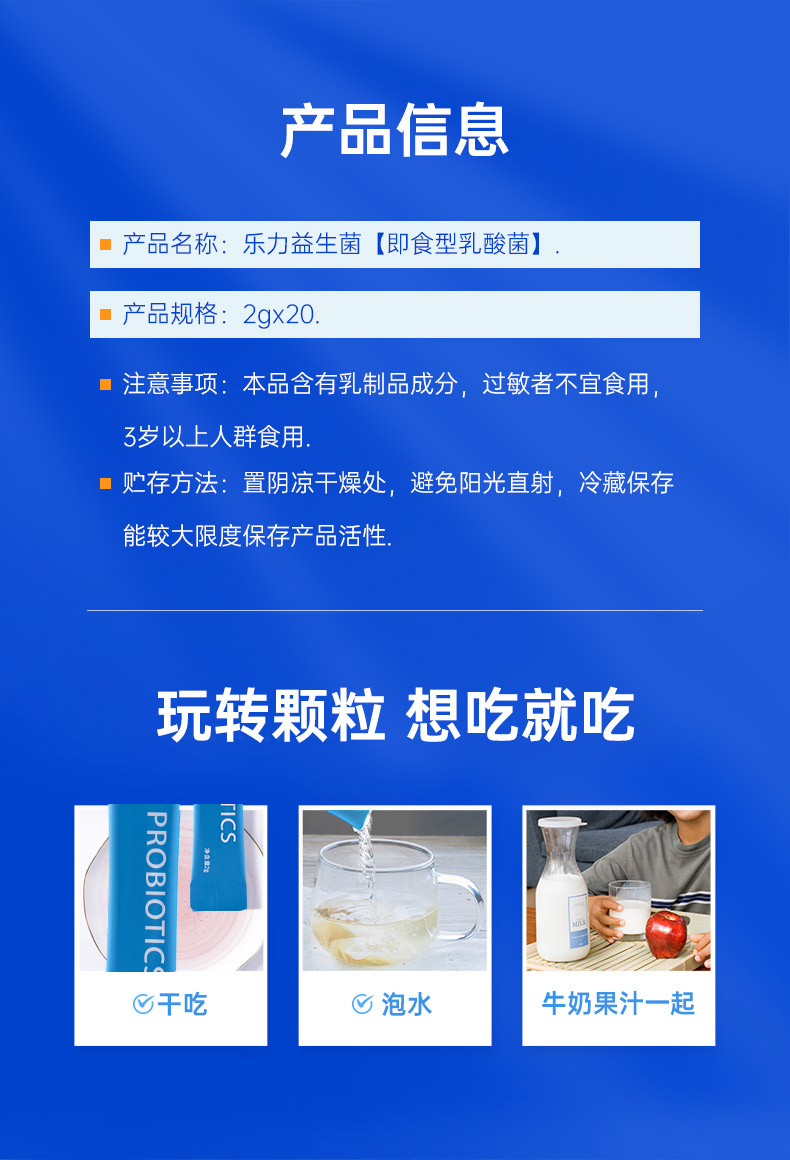 商品名称:乐力益生菌(畅)2000亿活菌2g*20条装成人女性儿童孕妇肠胃肠道益生元调理