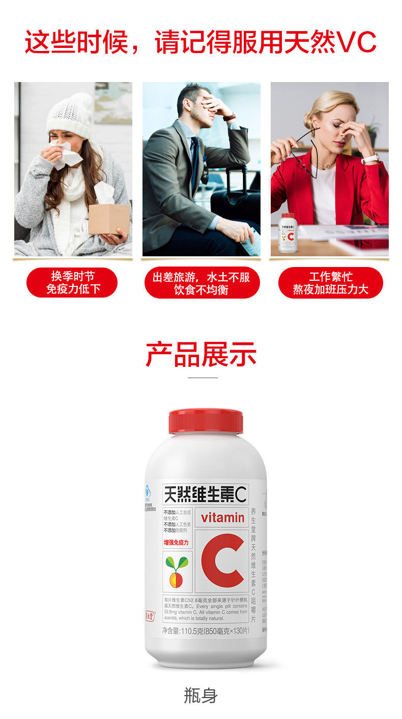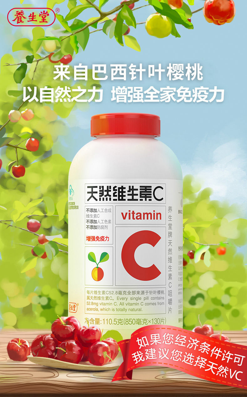 商品名称:【特价】养生堂天然维生素c咀嚼片130片针叶樱桃天然维c维生素c成人提高免疫力儿童