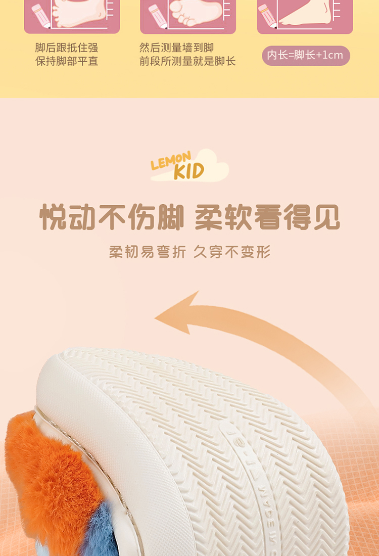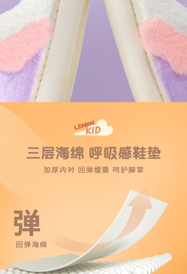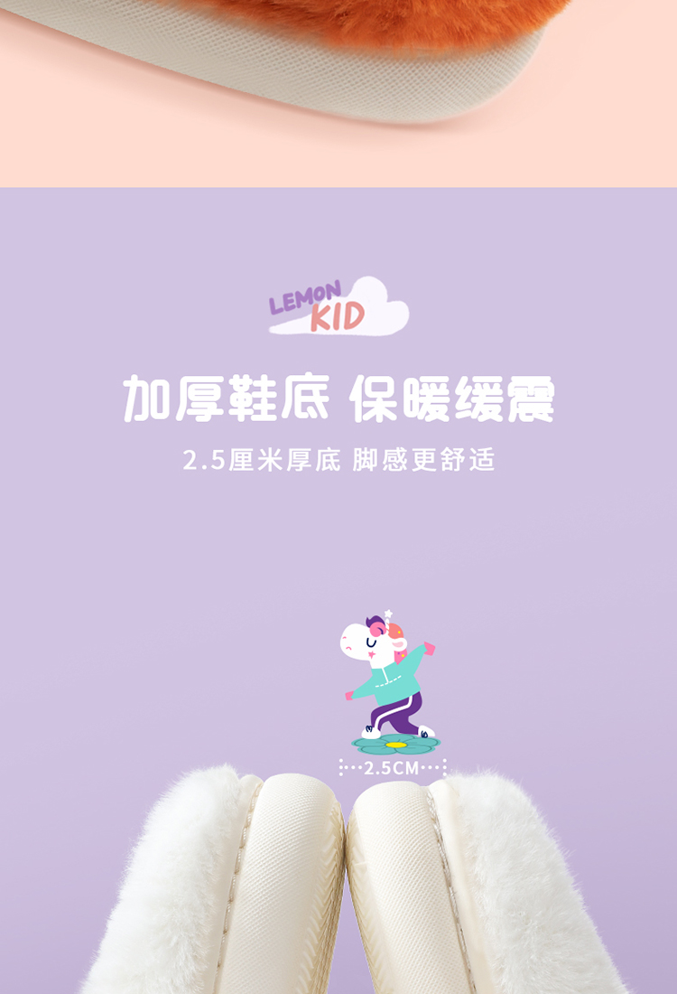 柠檬宝宝lemonkid儿童棉拖鞋秋冬季2022新款男童女童毛拖鞋室内宝宝家居鞋男孩女孩