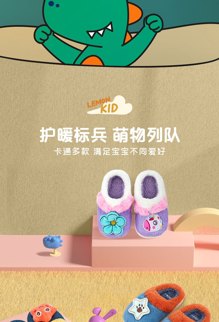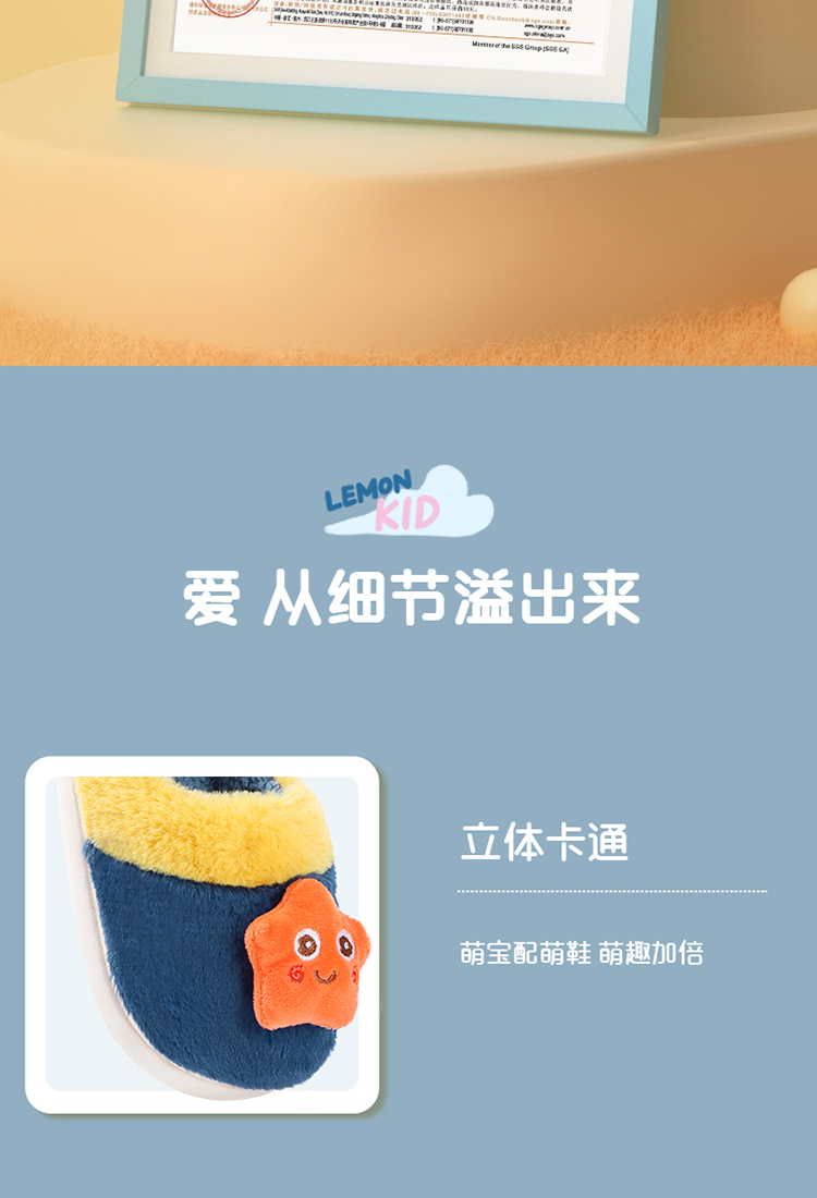 商品名称:柠檬宝宝lemonkid儿童棉拖鞋秋冬季2022新款男童女童毛拖鞋室内宝宝家居鞋男孩女孩