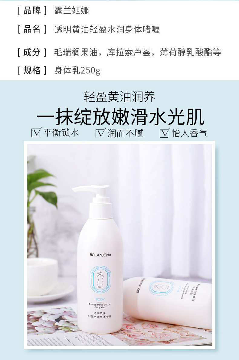 商品名称:露兰姬娜 透明黄油轻盈水润身体啫喱 平衡锁水 250g