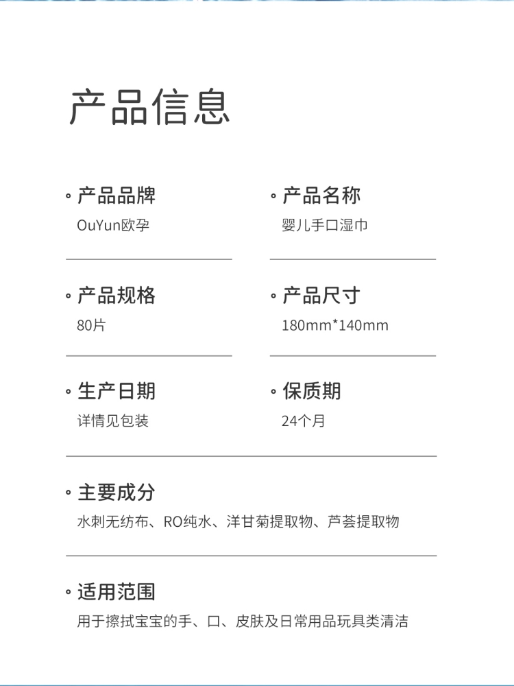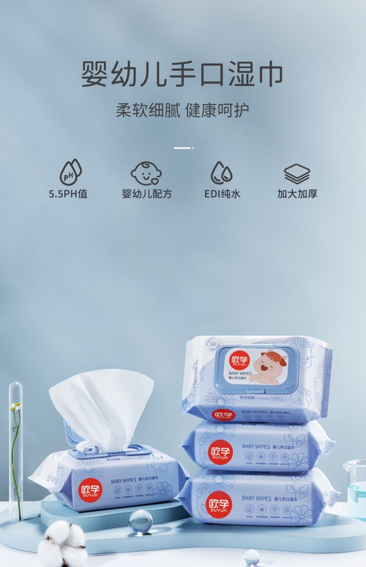 商品名称:欧孕婴儿湿巾纸新生手口屁专用湿纸巾宝宝80抽*4包家庭实惠大包装