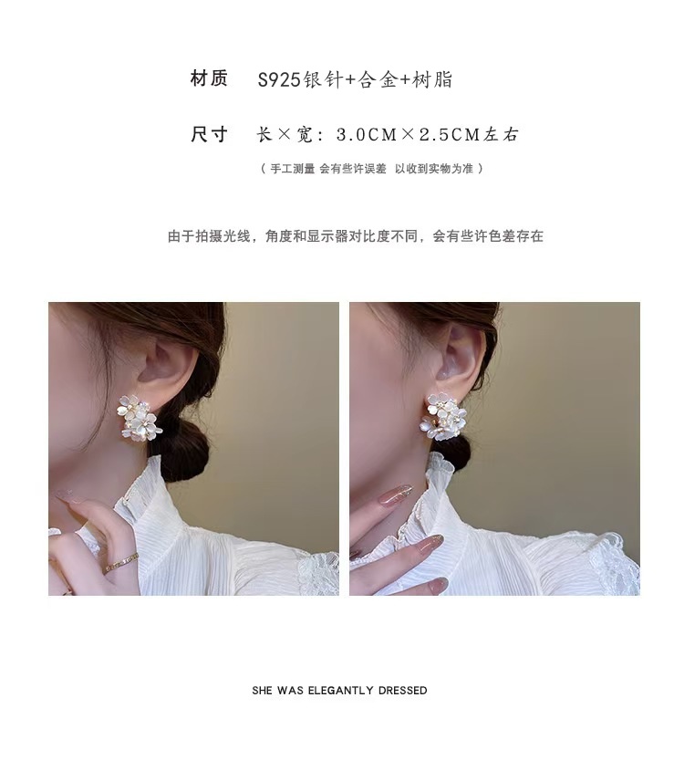 商品名称:彤彤兔 S925银针法式花朵耳环女新款潮小众设计感高级耳钉简约冷淡风耳饰