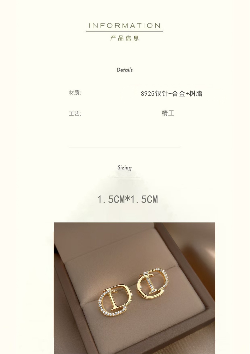 商品名称:彤彤兔 S925银针韩版CD字母款耳钉简约气质小众个性高级设计感耳环女