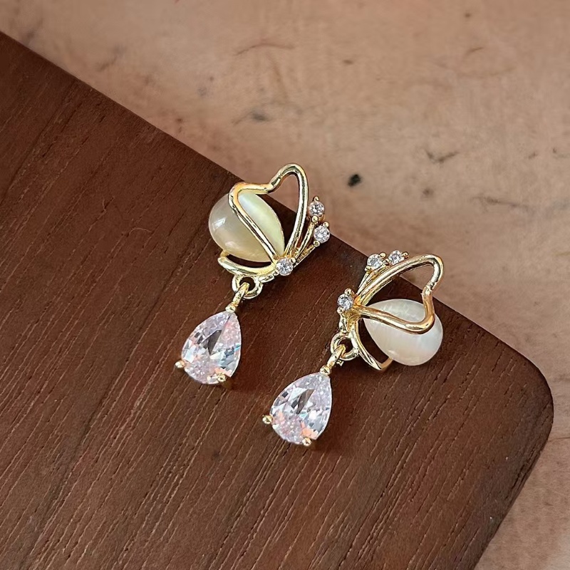 彤彤兔 s925银针猫眼石蝴蝶爱心款水滴锆石耳环女小众设计高级感气质耳钉