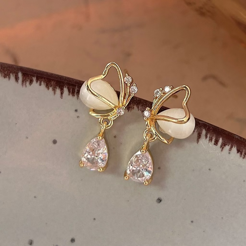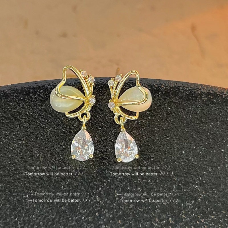 商品名称:彤彤兔 s925银针猫眼石蝴蝶爱心款水滴锆石耳环女小众设计高级感气质耳钉
