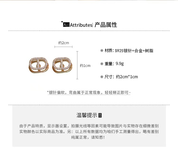 商品名称:彤彤兔 S925银针韩版CD字母款耳钉简约气质小众个性高级设计感耳环女耳饰
