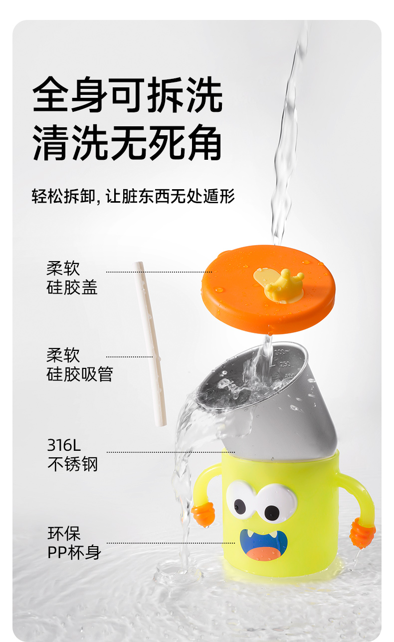 商品名称:如山儿童水杯家用不锈钢防摔带刻度吸管奶瓶喝奶喝饮水杯子宝宝牛奶杯