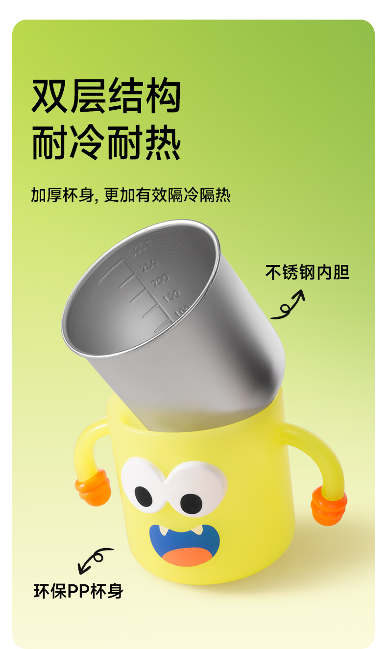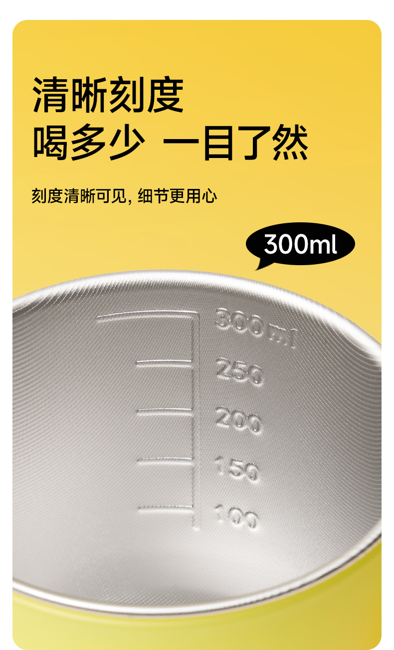 如山儿童水杯家用不锈钢防摔带刻度吸管奶瓶喝奶喝饮水杯子宝宝牛奶杯