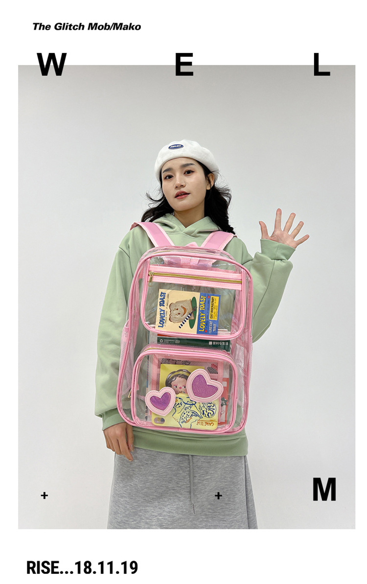 彤彤兔 PVC透明防水双肩包PVC大容量学生书包女士学生旅行包