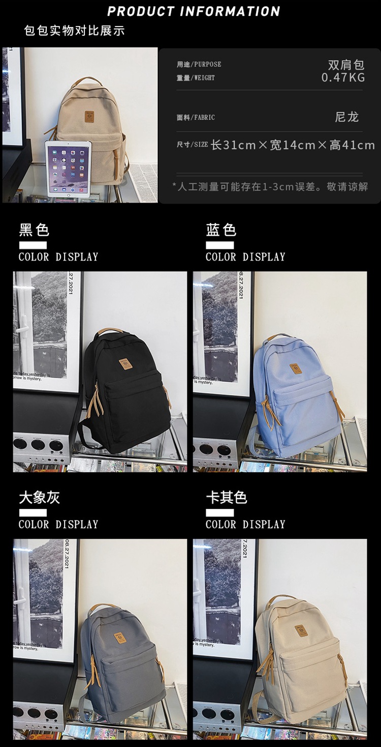商品名称:彤彤兔 双肩包女原宿风日系简约风校园大学生撞色大容量帆布书包女