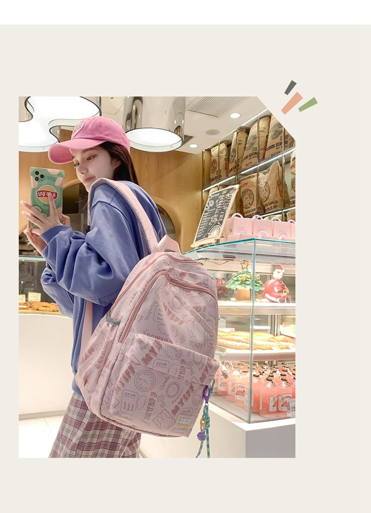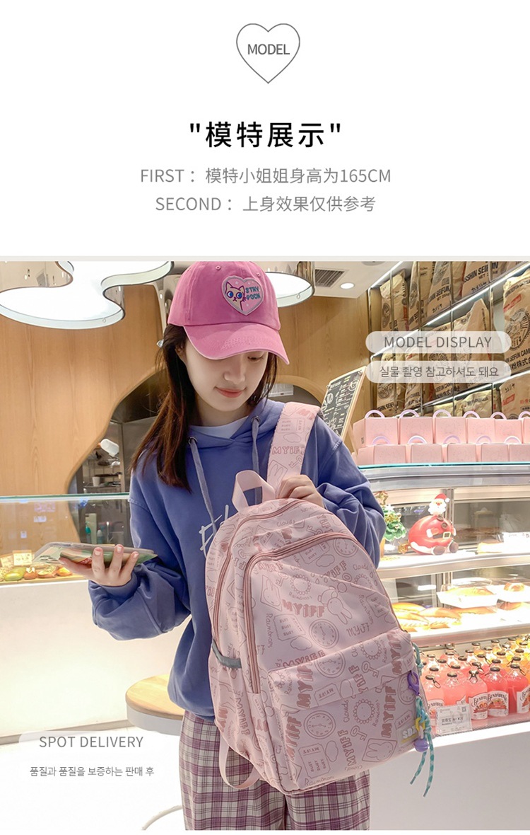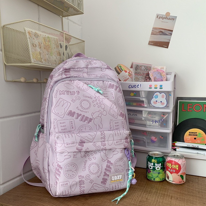 彤彤兔 校园大学生书包日系简约背包女休闲可爱涂鸦双肩包旅行