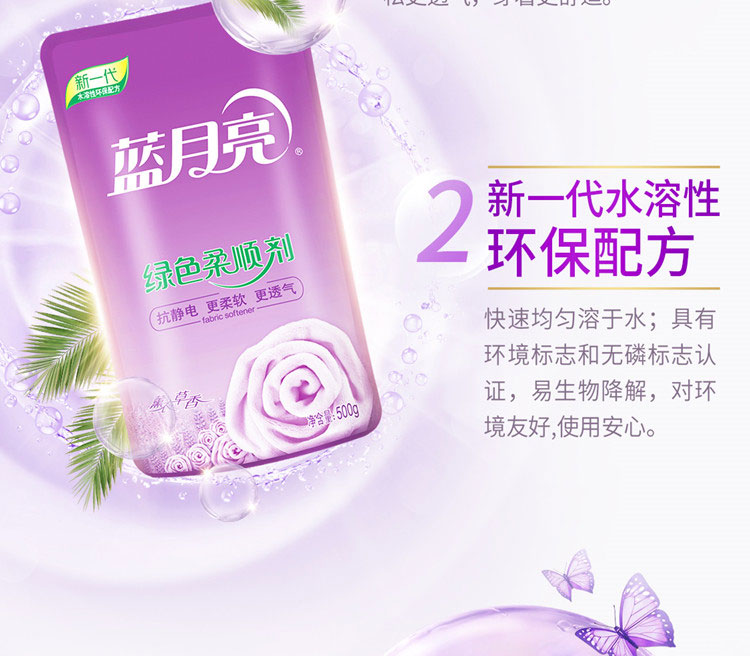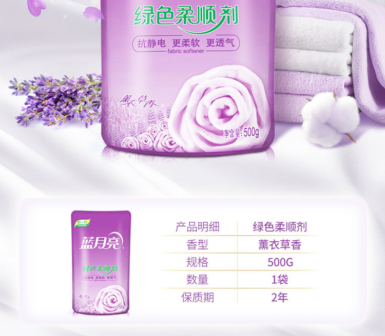 商品名称:蓝月亮 绿色柔顺剂(薰衣草)袋装500g香味持久留香衣物柔顺抗静电