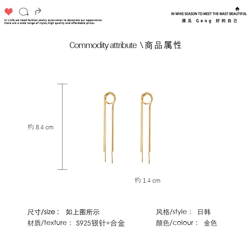 商品名称:彤彤兔 S925银针简约金属长款流苏耳环高级设计感轻奢小众耳钉潮精致百搭耳饰