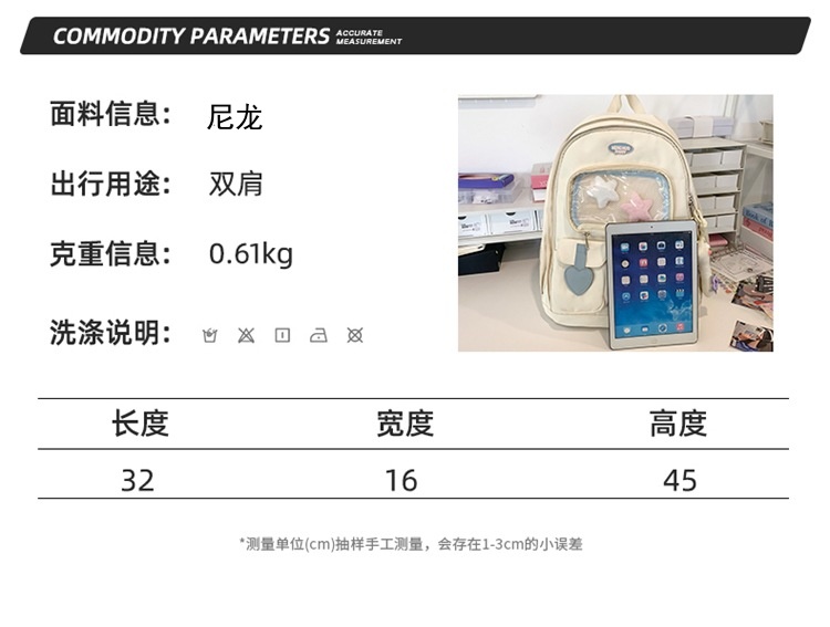 商品名称:彤彤兔 简约书包学生ins风大容量日系韩版校园大学生双肩 包背包