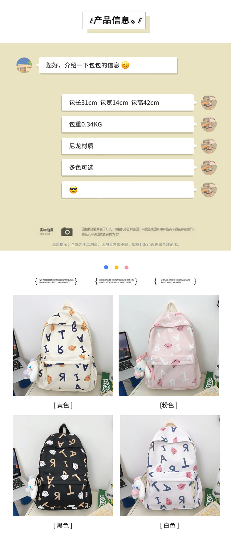 商品名称:彤彤兔 小清新可爱书包女校园背包大学生双肩包双肩旅行