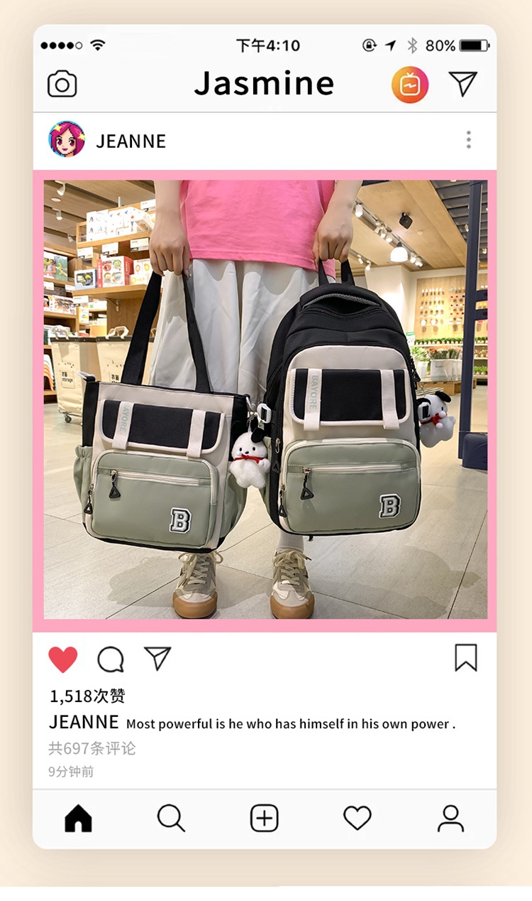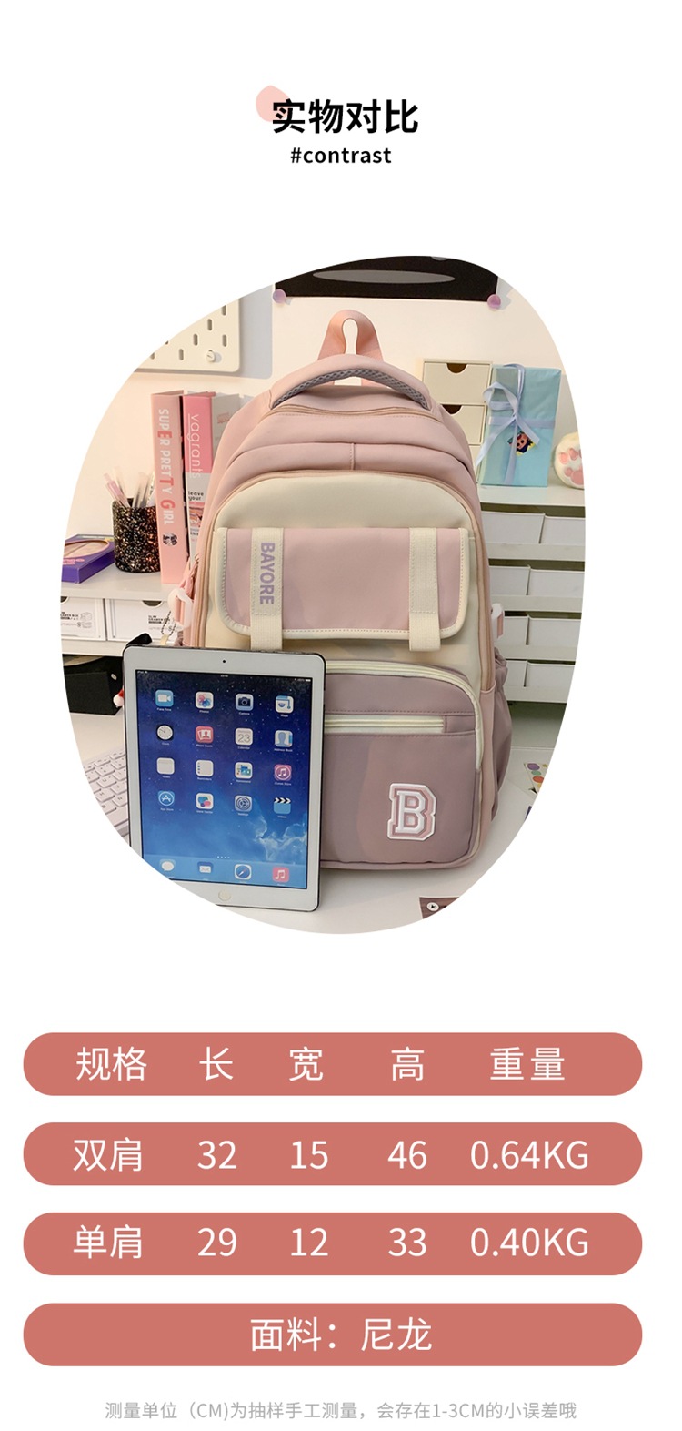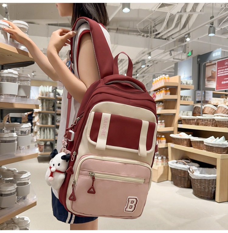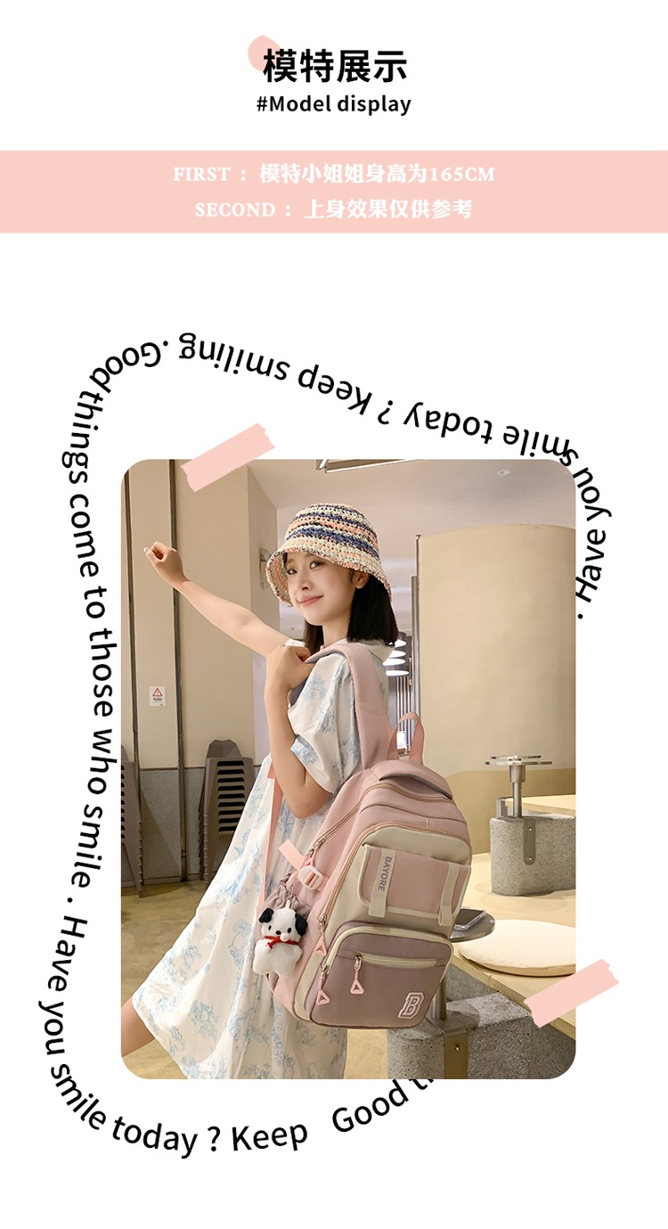 商品名称:彤彤兔 新款ins学院风大容量书包女日系简约校园大学生风双肩包撞色颜值学生包