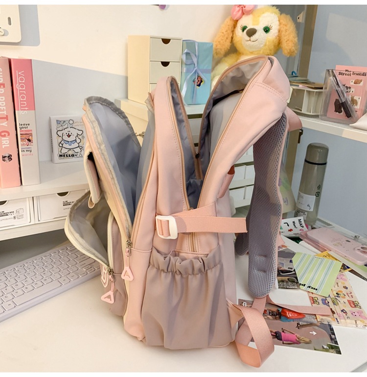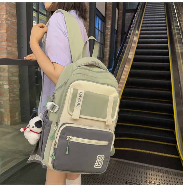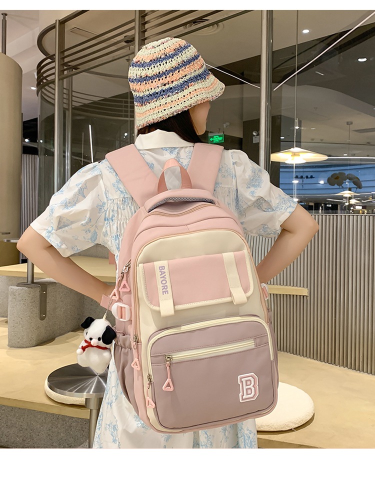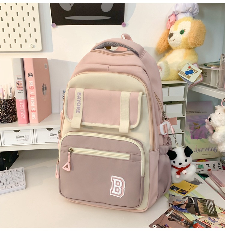 彤彤兔 新款ins学院风大容量书包女日系简约校园大学生风双肩包撞色颜值学生包