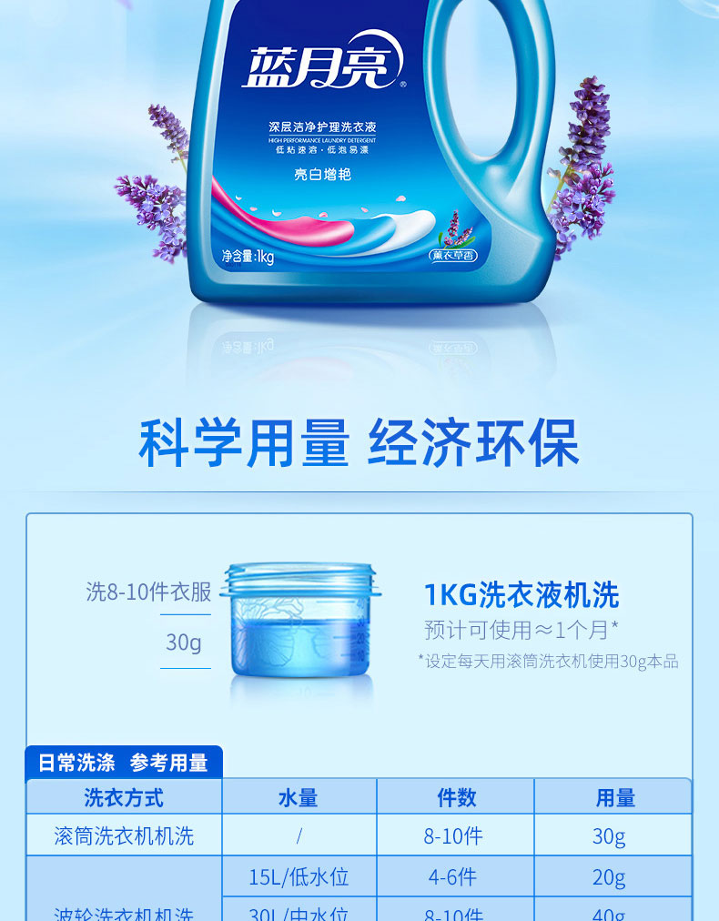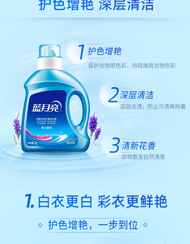 商品名称:蓝月亮 亮白增艳(薰衣草)洗衣液1kg儿童婴儿清洗剂